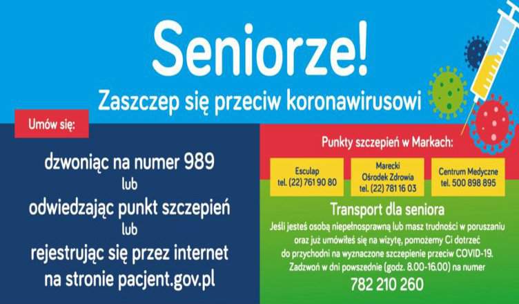 W ubiegłym tygodniu ruszył też marecki telefon. Pod numerem 782 210 260 można zgłosić te osoby, które mają już konkretną datę szczepienia i będą mieć kłopot z dotarciem do punktu medycznego z powodu niepełnosprawności lub trudności w poruszaniu się. Koszty przejazdów pokrywają wspólnie rząd i gmina Marki.