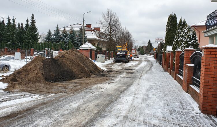 Pomimo zimowej aury trwają prace przy budowie sieci kanalizacji na ul. Kochanowskiego oraz na odcinku ul. Budkiewicza (od ul. Narutowicza do ul. Prostej).
