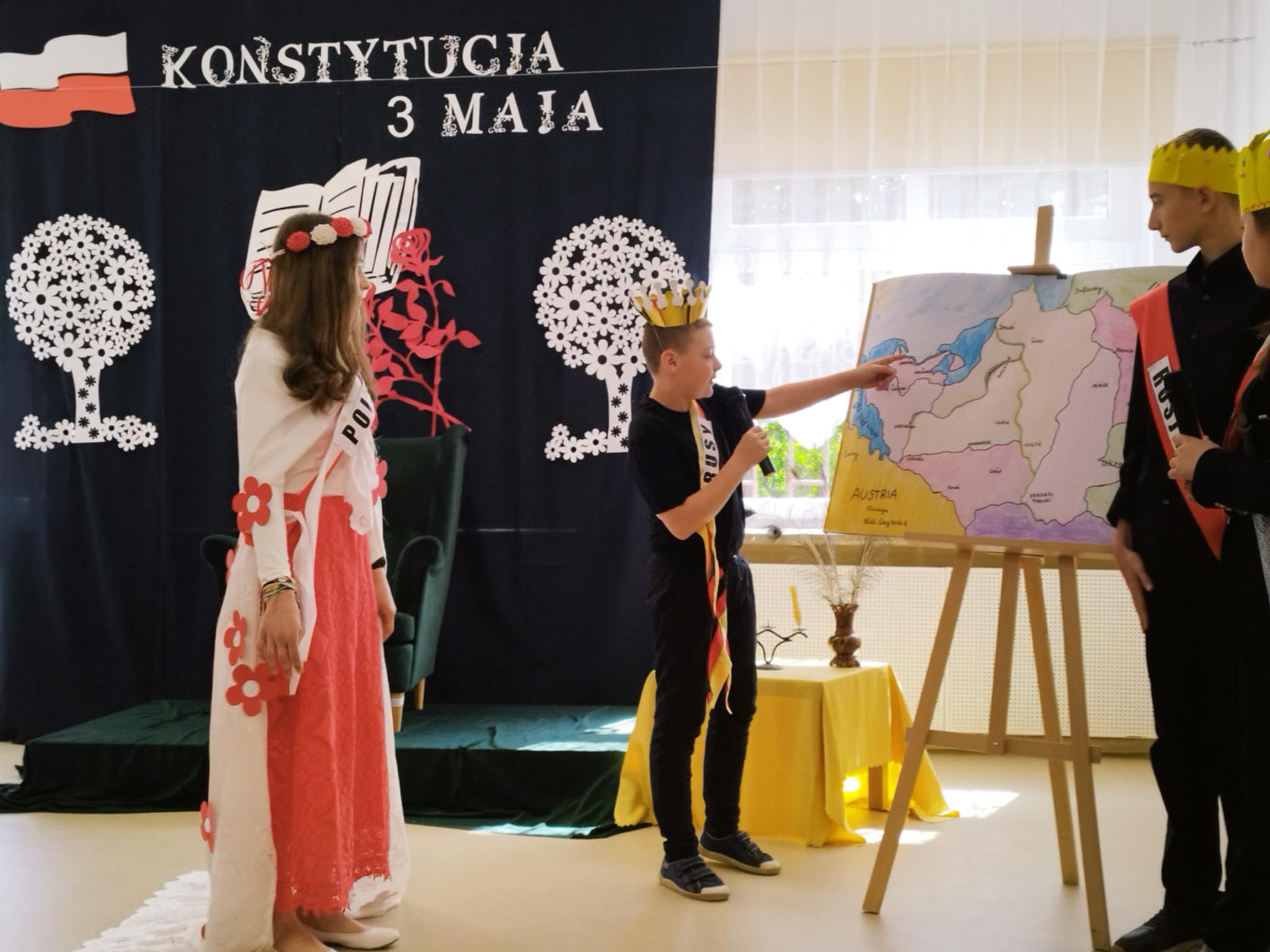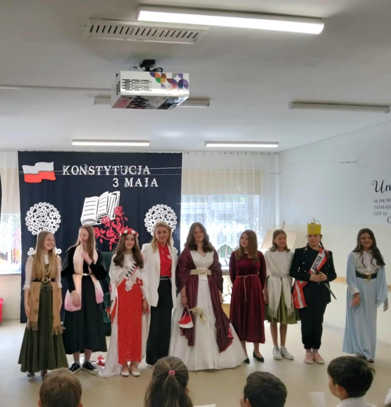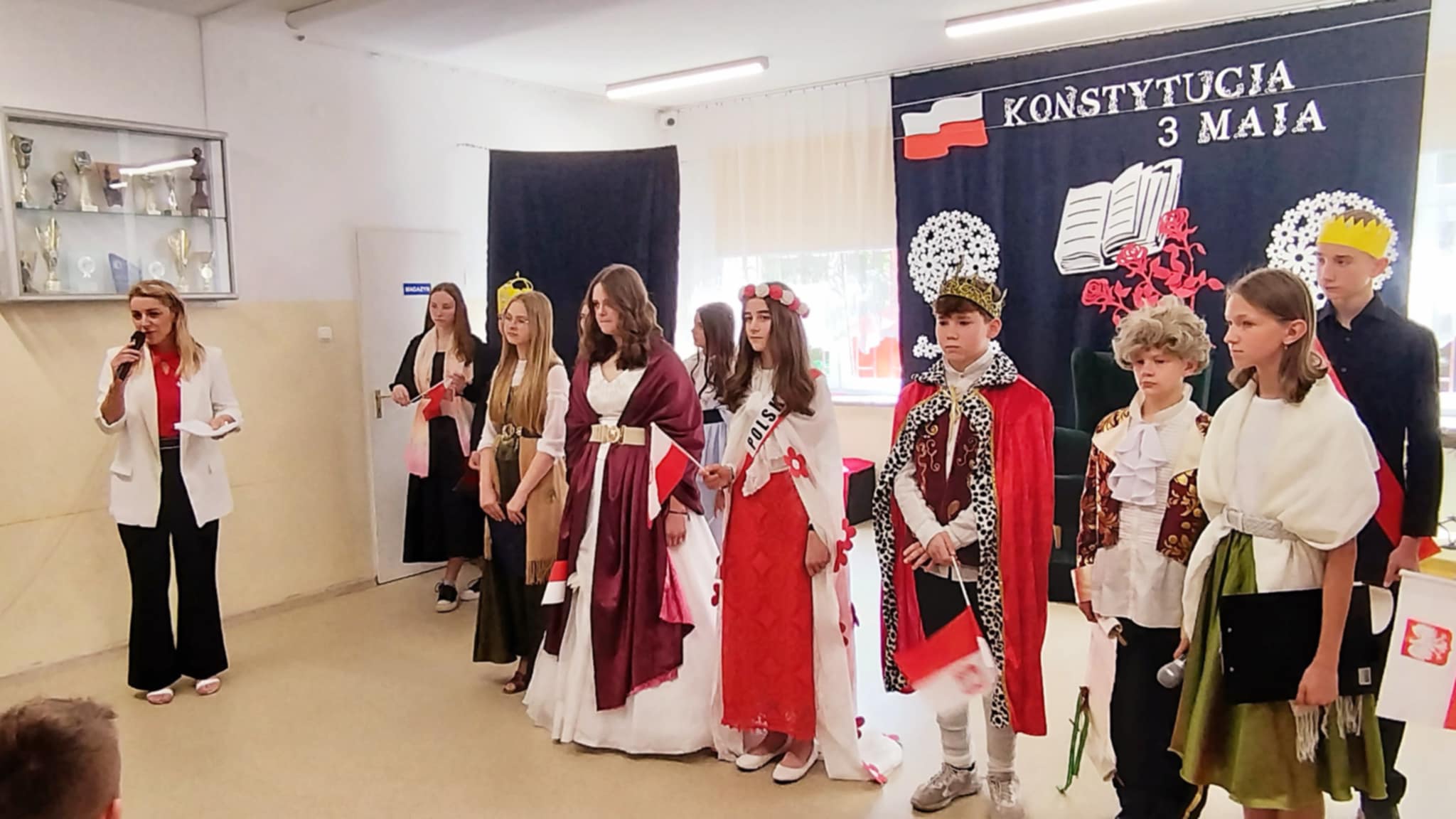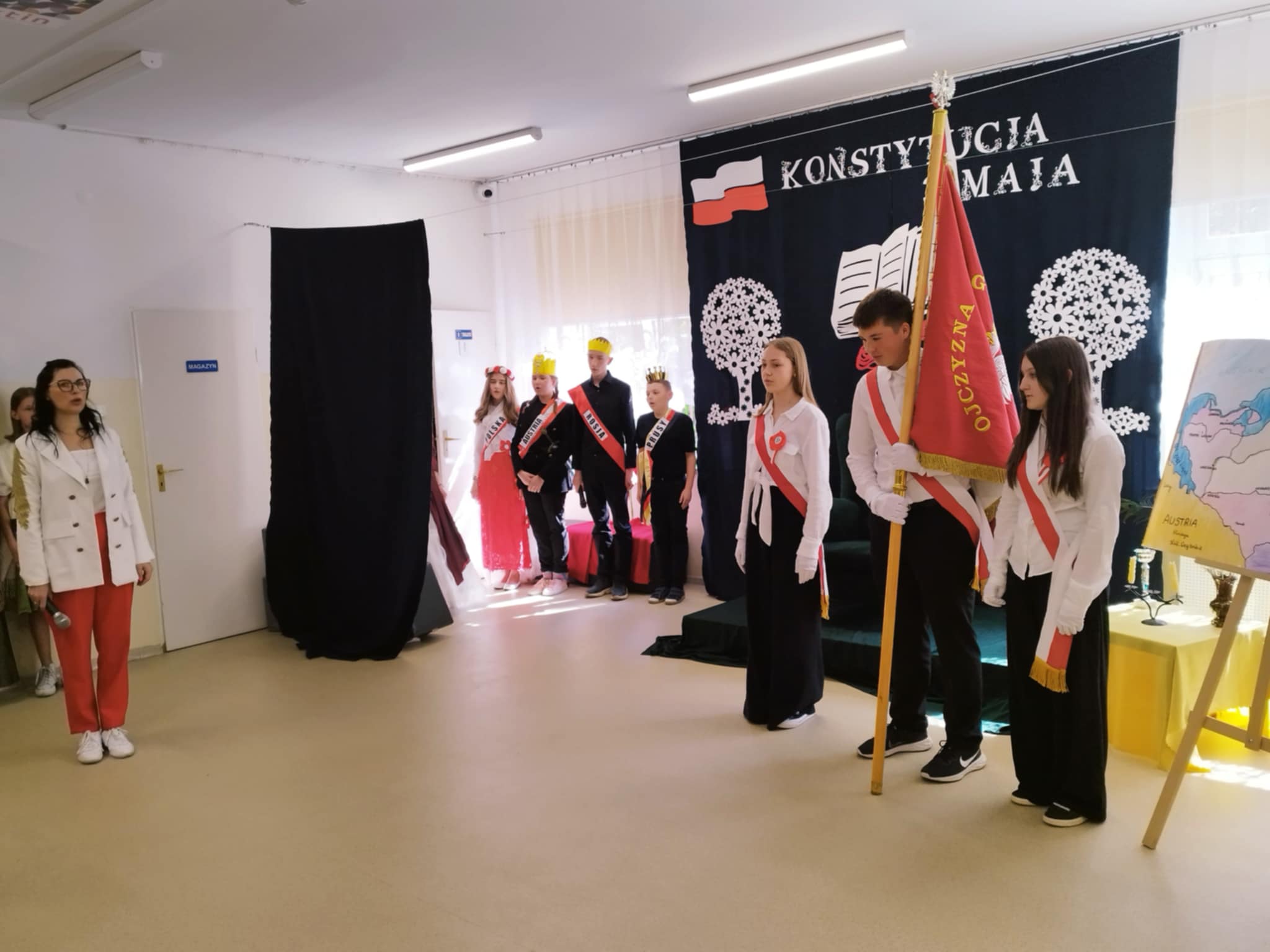 Tegoroczne obchody miały formę teatralnej inscenizacji, która stała się nie tylko artystycznym wydarzeniem, lecz przede wszystkim głęboką lekcją patriotyzmu. Poprzez dramatyczną grę aktorską, recytacje, pieśni oraz narrację uczniowie przenieśli społeczność szkolną do czasów Sejmu Czteroletniego i przełomowego momentu w dziejach Polski – uchwalenia pierwszej w Europie i drugiej na świecie konstytucji.