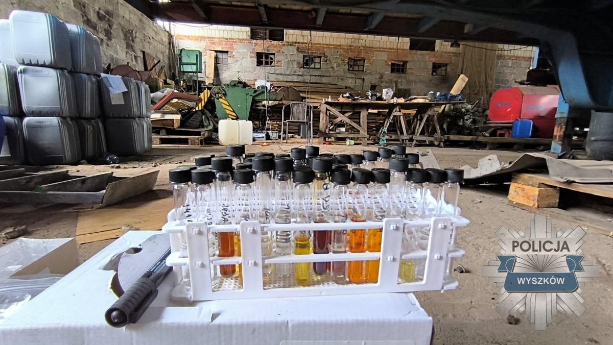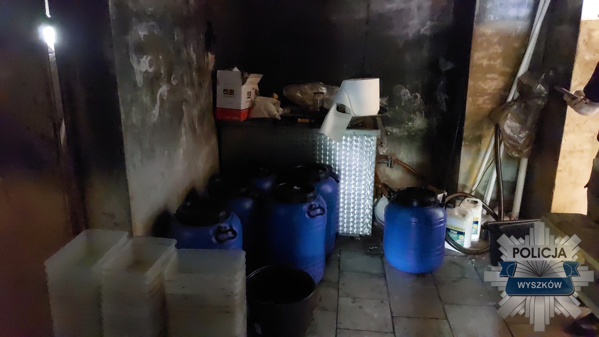 Policjanci z Wydziału Kryminalnego Komendy Powiatowej Policji w Wyszkowie ujawnili nielegalną linię produkcyjną służącą do wytwarzania narkotyków. Zatrzymano trzech braci w wieku 22, 31 i 36 lat oraz zabezpieczono 22 kg klefedronu oraz różne odczynniki, prekursory i półprodukty, które miały służyć do produkcji kolejnej partii narkotyków. Mężczyznom grozi kara do 20 lat więzienia.