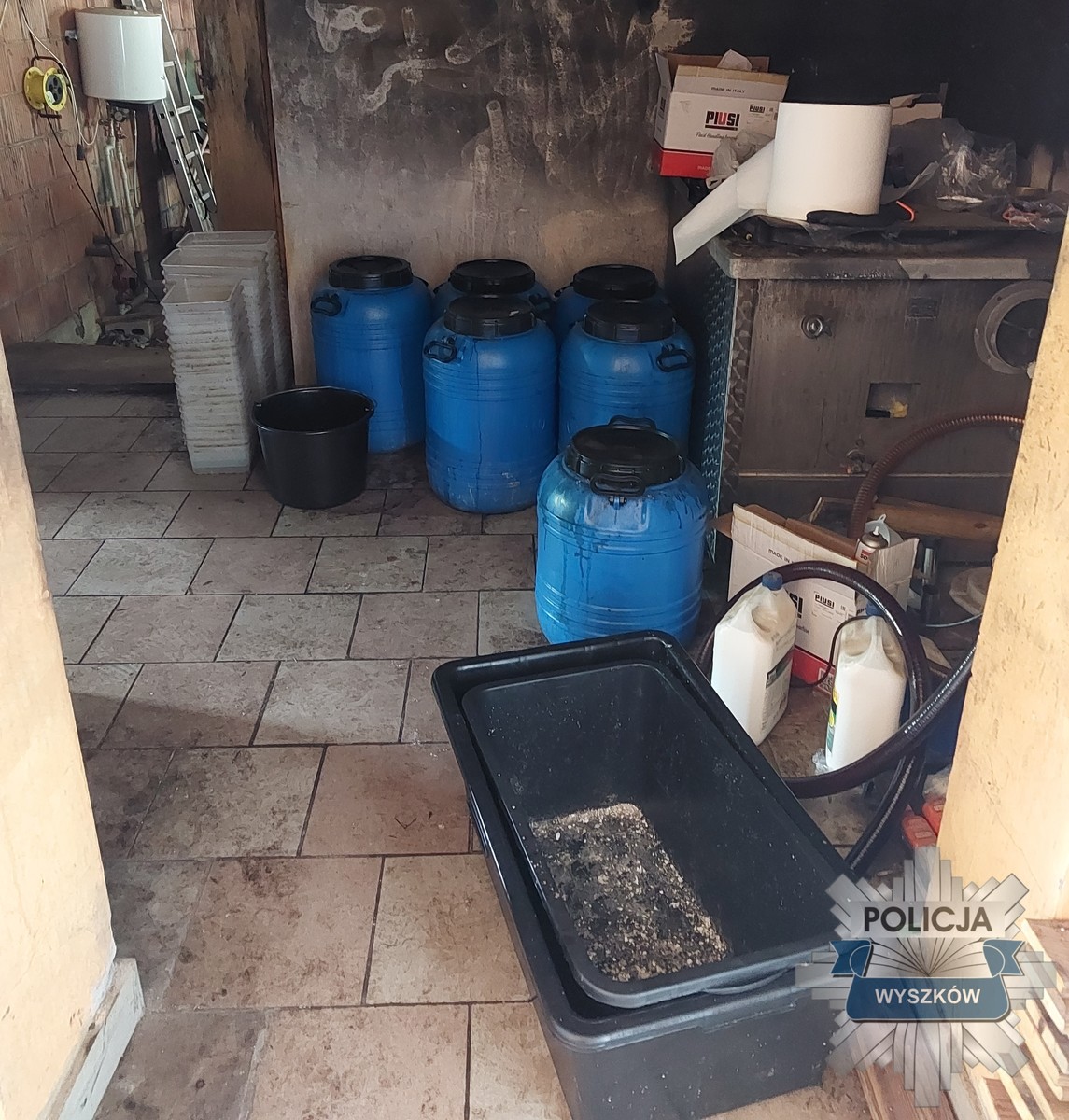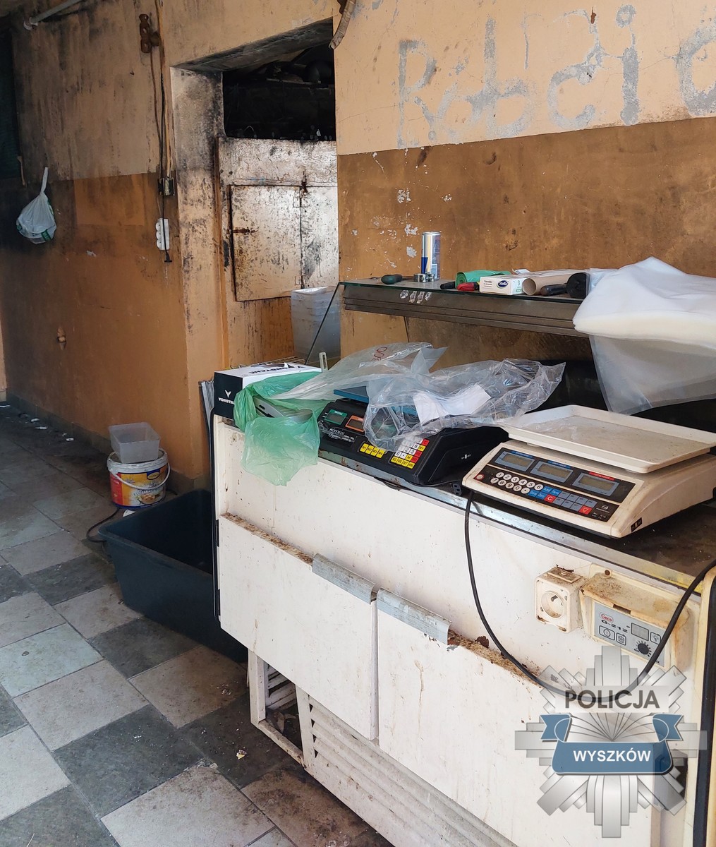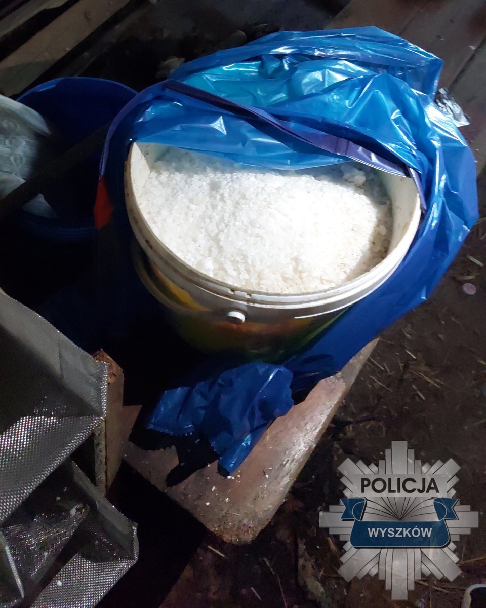 Na posesji, w budynku gospodarczym policjanci ujawnili nielegalną linię produkcyjną służącą do wytwarzania środków odurzających. Wyszkowscy policjanci wraz z ekspertami laboratorium kryminalistycznego KWP zs. w Radomiu zabezpieczyli około 22 kg klefedronu tzw. kryształu oraz środki chemiczne, które miały służyć do produkcji kolejnej partii narkotyków, były to różne odczynniki, prekursory oraz półprodukty.