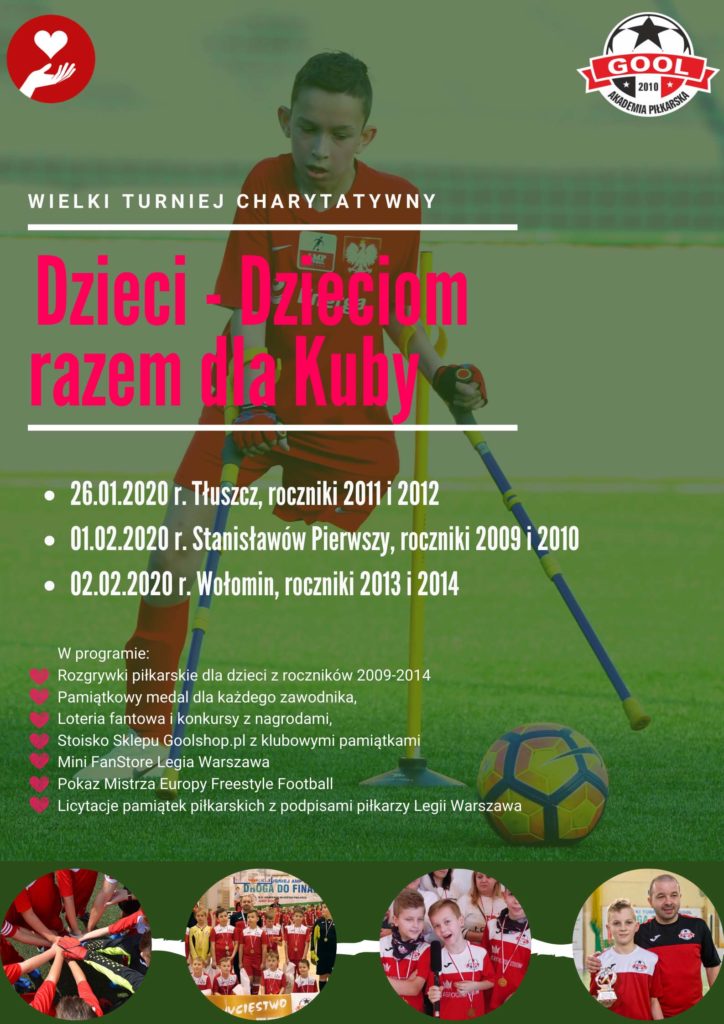 Rokrocznie Klub Sportowy Akademia Młodego Piłkarza GOOL organizuje Turniej Charytatywny ?Dzieci-Dzieciom?, zbierając fundusze na pomoc potrzebującym. W tym roku mali piłkarze grają by pomóc 14 letniemu Jakubowi Pawłowskiemu.