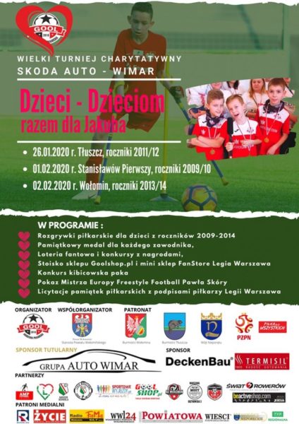 2 lutego w Wołominie (Powiat Wołomiński) Klub Sportowy Akademia Młodego Piłkarza GOOL organizuję Charytatywny Turniej Skoda Auto-Wimar ?Dzieci-Dzieciom, razem dla Jakuba.