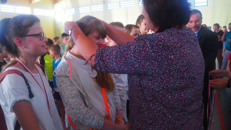i stanąć na podium. Trzecią kategorią wiekową była młodzież klas gimnazjalnych w połączeniu z uczniami 7 i 8 klasy szkoły podstawowej. Poziom tej grupy był zdecydowanie najwyższy. Zawodnicy popisywali się swoją techniką indywidualną, zachwycając kibiców spektakularnymi akcjami. Wyniki meczów zmieniały się jak w kalejdoskopie, a o wynikach końcowych decydowały często niuanse. Wszystkie drużyny grały bardzo ambitnie, ale zgodnie z duchem fair play, co potwierdził sędzia zawodów Grzegorz Gołda.