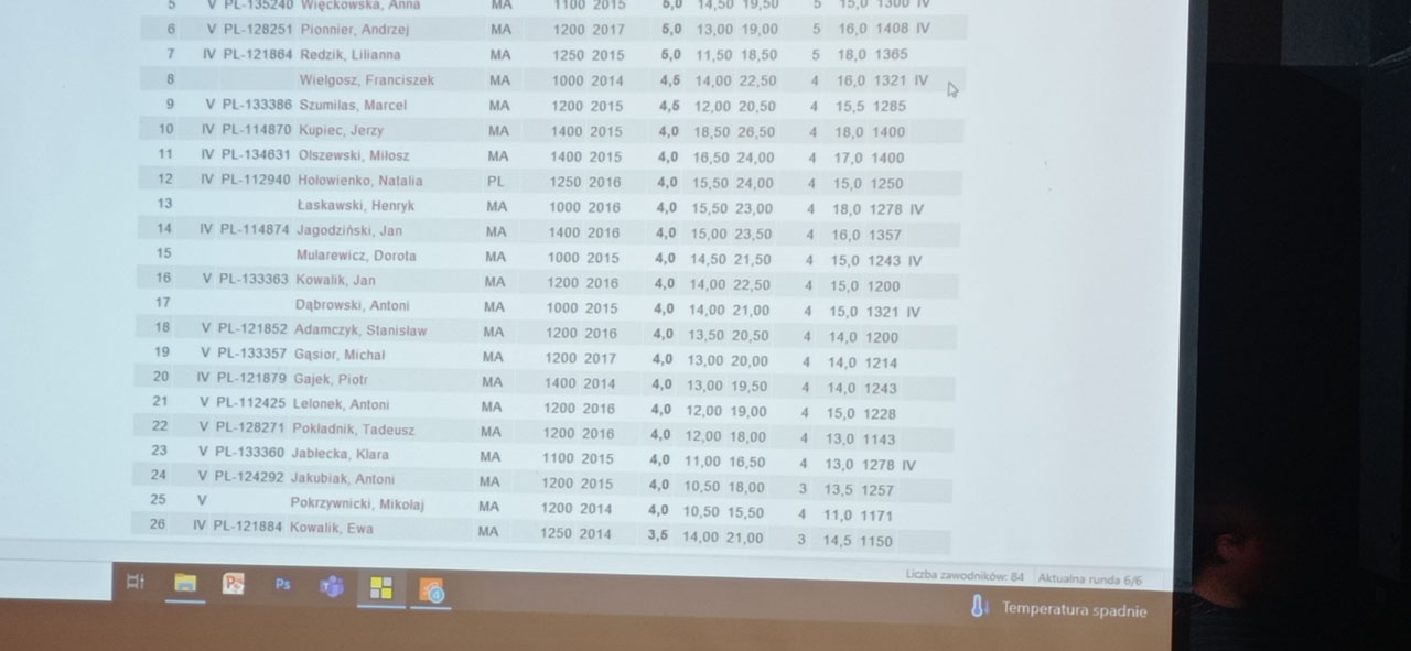 Wyniki turnieju zawodników grupy V i IV kategorii szachowej:
