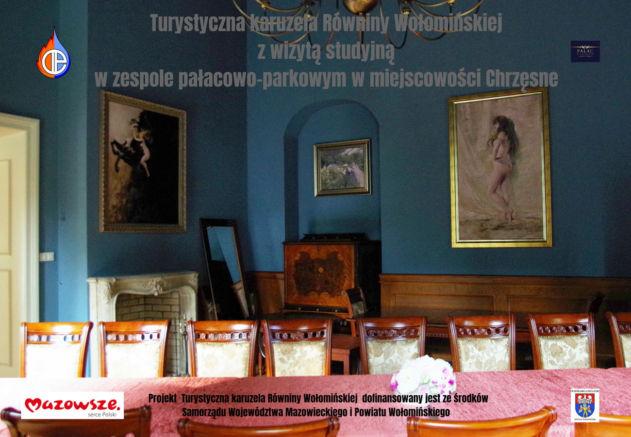Turystyczna karuzela Równiny Wołomińskiej rozpoczęła się wizytą w zespole pałacowo-parkowym w miejscowości Chrzęsne – powiat Wołomiński, gmina Tłuszcz.