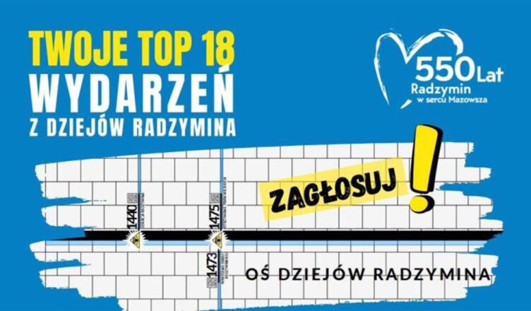 Radzymin świętuje 550-lecie nadania praw miejskich! Z tej okazji na placu Tadeusza Kościuszki powstanie symboliczne malowidło – oś czasu, na której znajdzie się 18 wydarzeń o szczególnym znaczeniu dla dziejów naszego miasta.