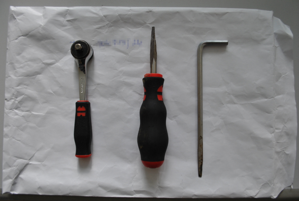 Przy mężczyźnie znalezione zostały przedmioty służące do prowadzenia przestępczego procederu, w tym specjalnie zaostrzone klucze. Dodatkowo policjanci zabezpieczyli radiotelefon oraz specjalistyczny zagłuszacz sygnału GPS.
