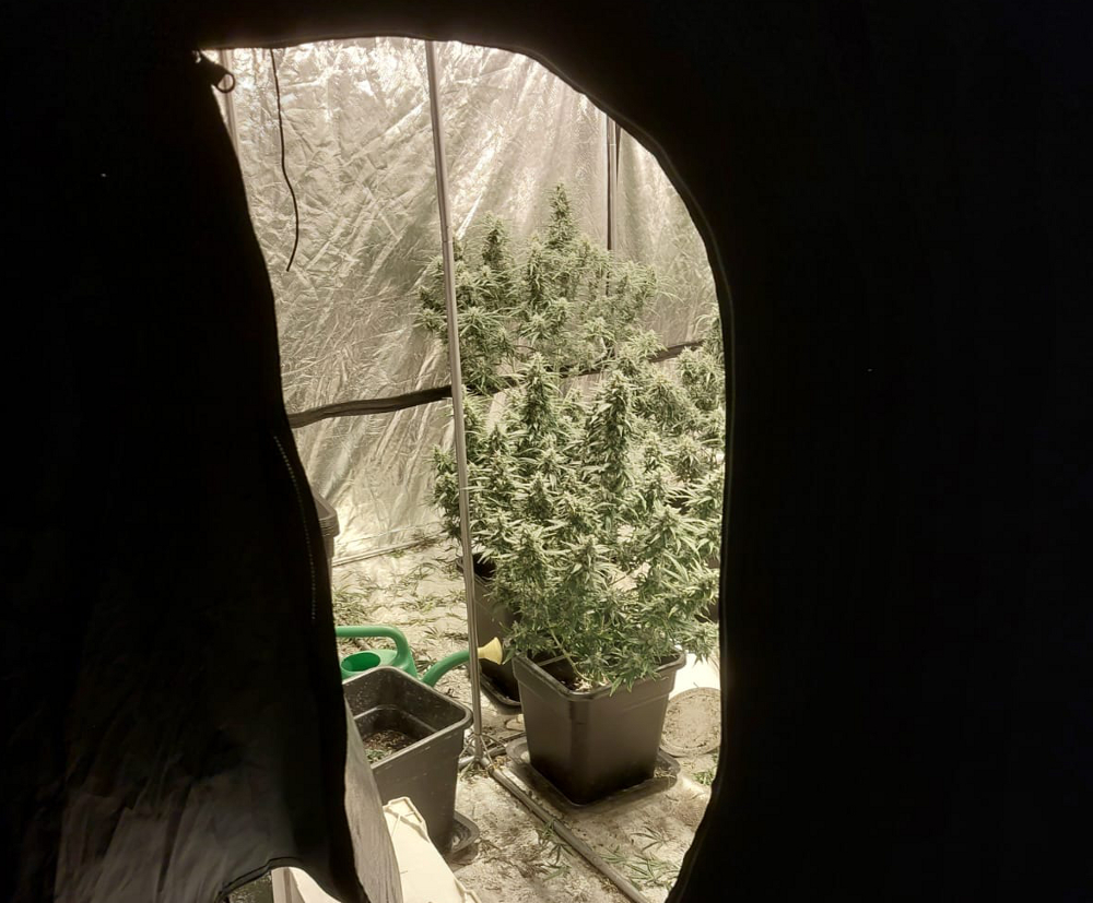 W trakcie czynności w miejscu zameldowania młodego mężczyzny, policjanci nie znaleźli skradzionych w sklepie przedmiotów, ale ujawnili dowody popełnienia przez niego innych przestępstw. W stodole funkcjonariusze znaleźli nadwozie samochodu osobowego, który jak ustalono został skradziony na terenie Niemiec. Dalsze czynności w sprawie doprowadziły do ujawnienia przez mundurowych 19 doniczek z nielegalnie uprawianymi krzewami konopi indyjskiej w różnych fazach wzrostu, namiotu z instalacją elektryczną oraz systemem nawodnienia. Ujawnione elementy samochodu oraz rośliny wraz z całym osprzętem zostały zabezpieczone i poddane dalszym badaniom.
