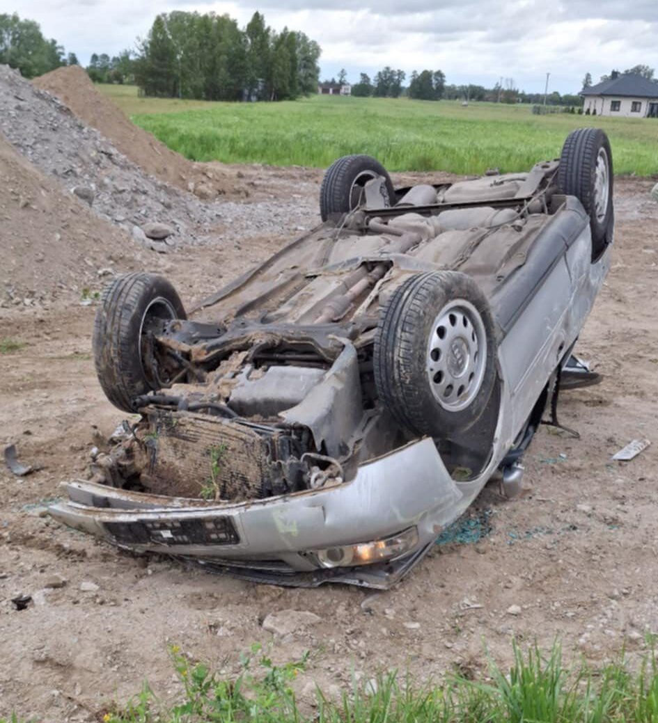 Dachowanie w miejscowości Kury. Interwencja służb ratunkowych po groźnym zdarzeniu drogowym