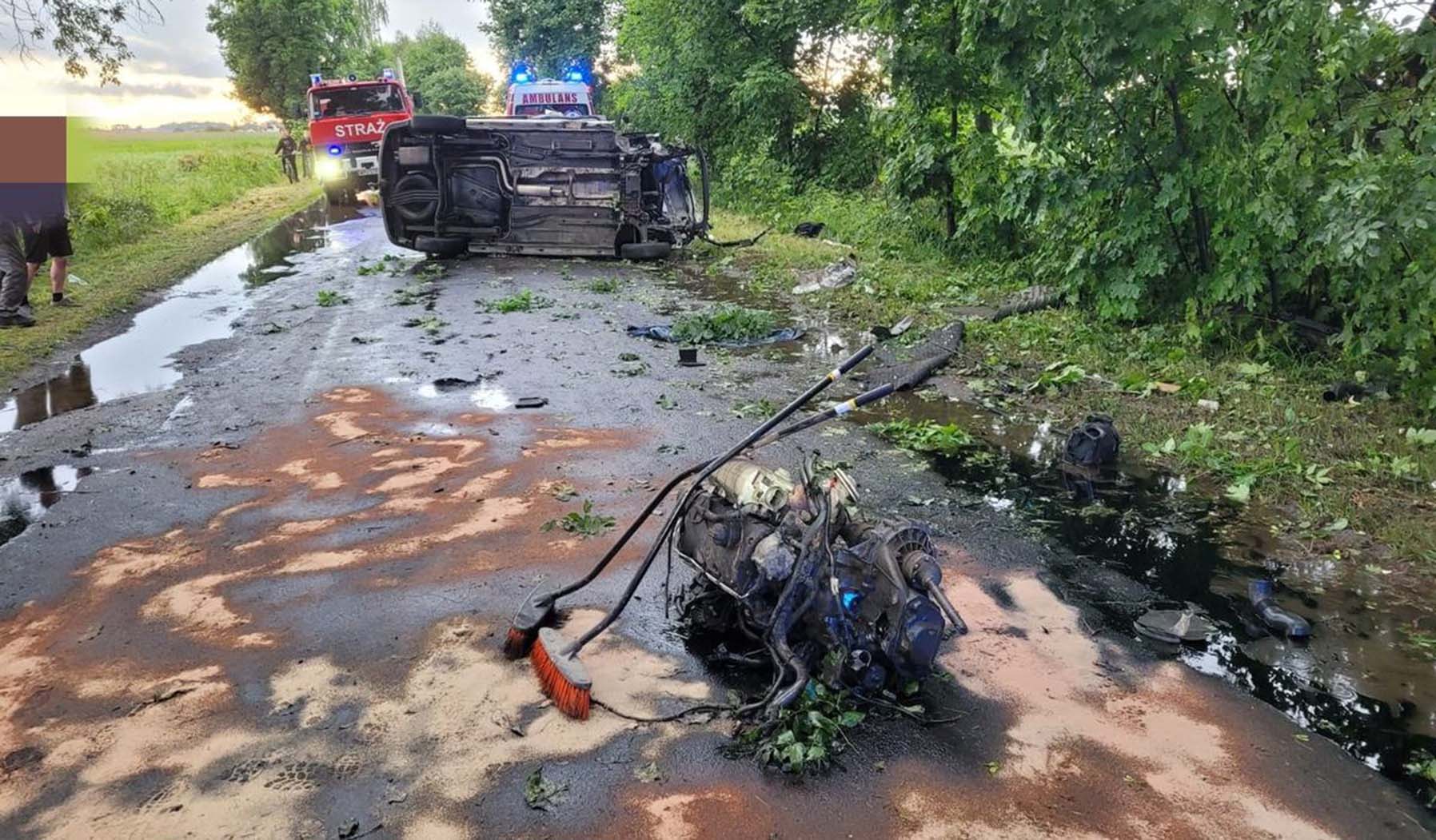 Do groźnie wyglądającego zdarzenia drogowego doszło w poniedziałek około godziny 18.25 w Rząśniku na ul. Wyszkowskiej prowadzącej do wsi Gródek Nowy. Ze wstępnych ustaleń policjantów wydziału ruchu drogowego wynika, że 32-letni kierowca dostawczego volkswagena nie dostosował prędkości do warunków panujących na drodze, wjechał w kałużę po czym stracił panowanie nad pojazdem i uderzył w przydrożne drzewo. Auto mieszkańca powiatu pułtuskiego zakończyło podróż dachując. Siła uderzenia była na tyle silna, że z samochodu wypadł jego silnik. Kierowca dostawczaka z obrażeniami został przewieziony do szpitala, gdzie została mu pobrana krew do badań laboratoryjnych.