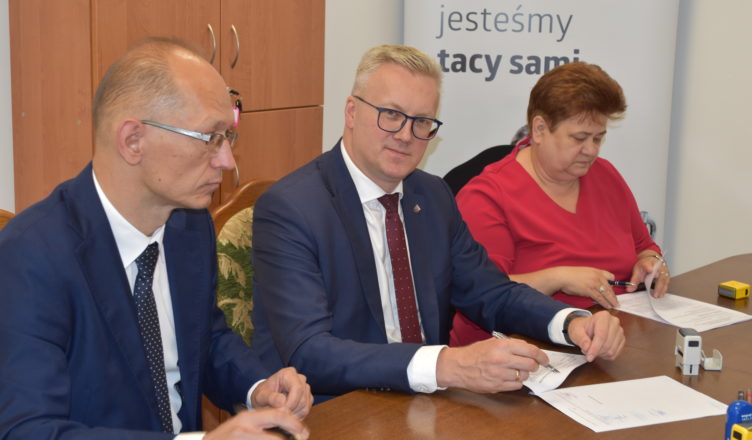 Starosta Adam Lubiak wspólnie z Wicestarostą Robertem Szydlikiem oraz Skarbnik Jadwigą Tomasiewicz podpisali w poniedziałek w siedzibie PFRON w Warszawie umowę na dofinansowanie projektów w ramach realizacji ?Programu wyrównywania różnic między regionami III?.