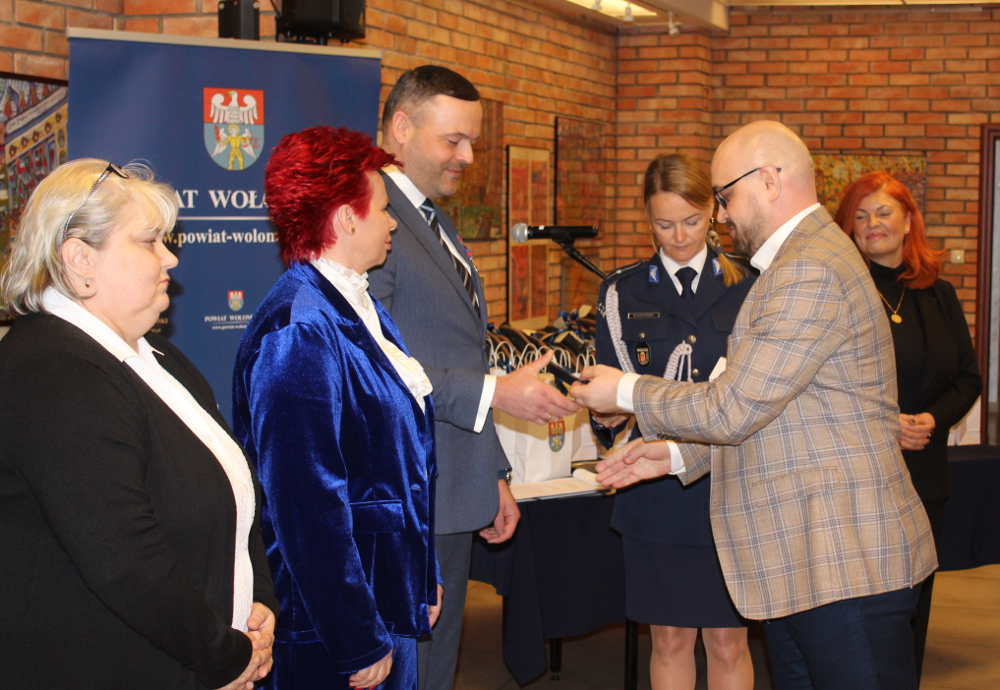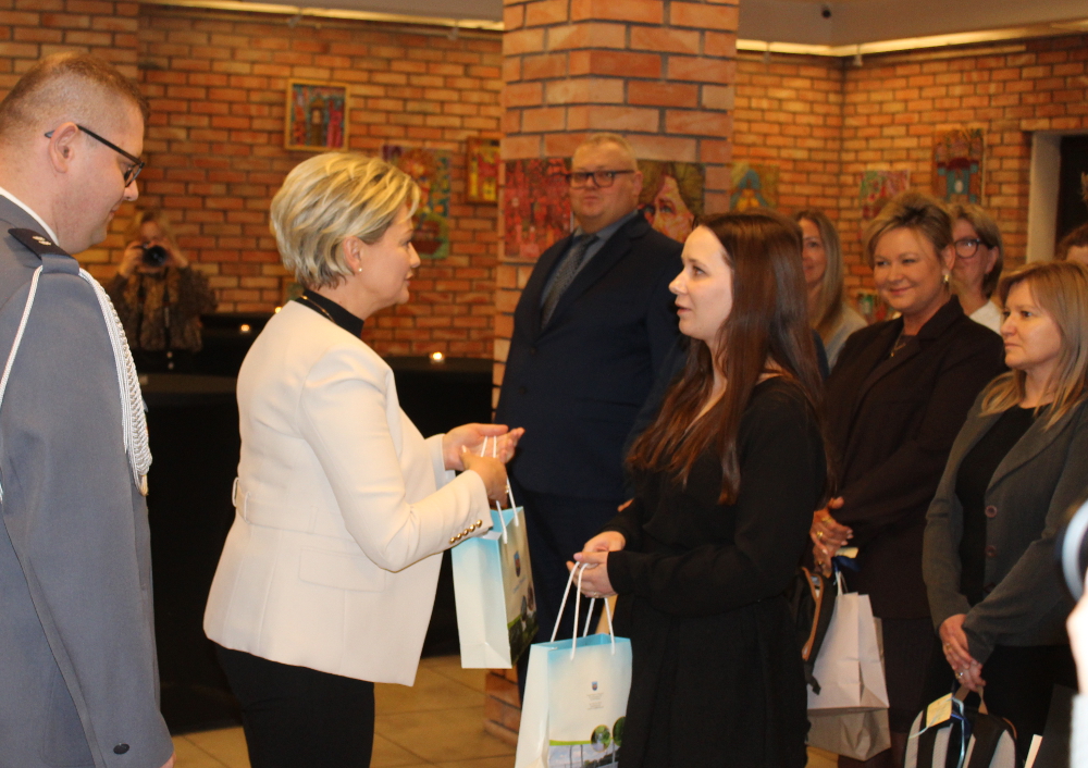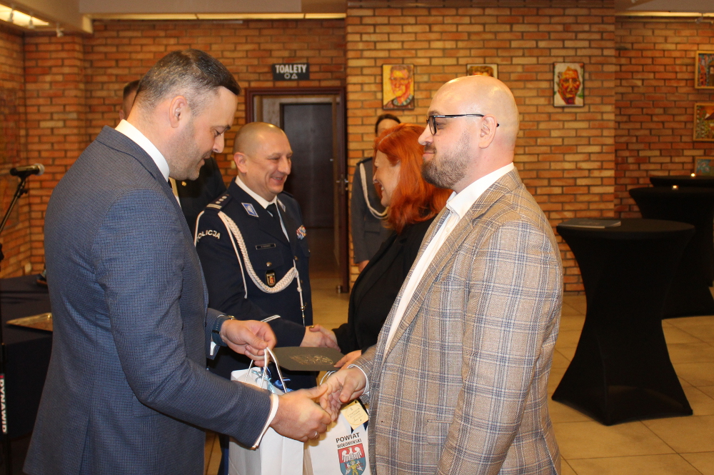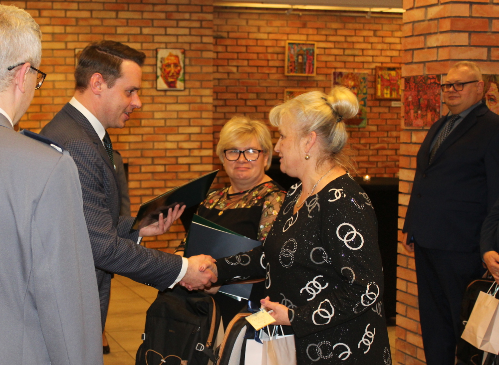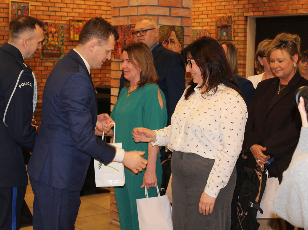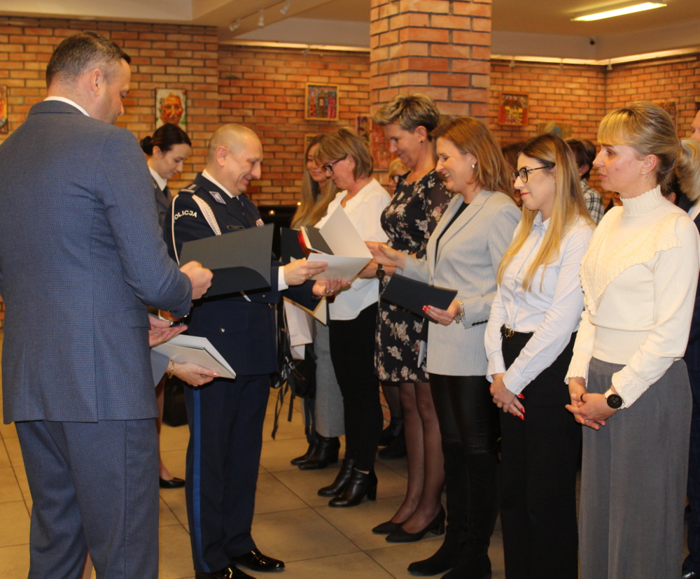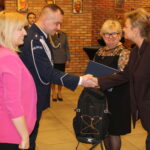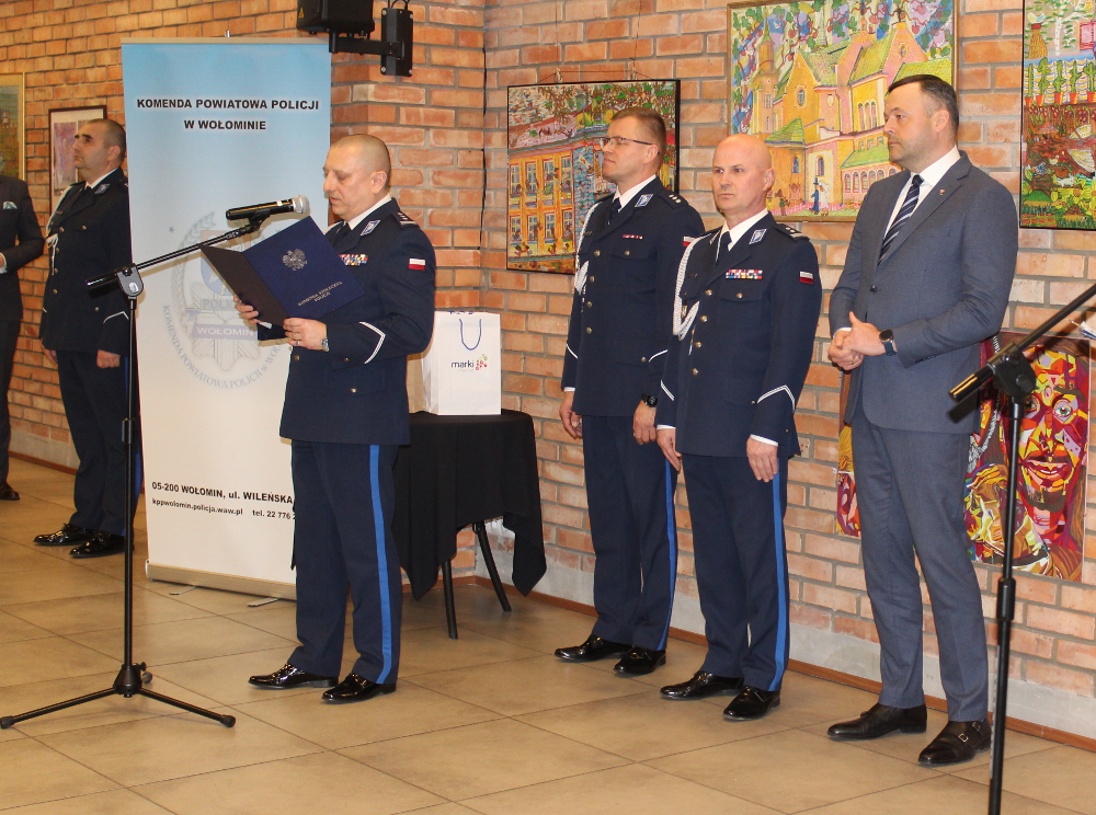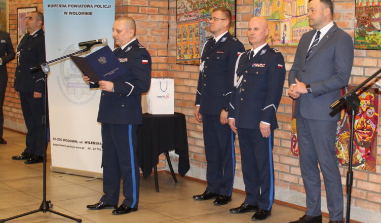 Na uroczystości nie zabrakło również życzeń, upominków, pisemnych podziękowań i gratulacji od Kadry Kierowniczej Komendy Powiatowej Policji w Wołominie, w tym od zaproszonych i obecnych na uroczystości gości: Starosty Wołomińskiego Pana Arkadiusza Werelicha, Burmistrz Wołomina Pani Elżbiety Radwan, w której imieniu przybył Zastępca Burmistrza Pan Dariusz Szymanowski, Burmistrza Marek Pana Jacka Orycha, Burmistrz Ząbek Pani Małgorzaty Zyśk, Burmistrz Tłuszcza Pani Beaty Krystyny Skulimowskiej, Burmistrza Kobyłki Pana Konrada Kostrzewy, Burmistrza Zielonki Pana Kamila Michała Iwandowskiego, Burmistrza Radzymina Krzysztofa Chacińskiego, w którego imieniu oraz swoim wystąpił Wójt Gminy Dąbrówka Pan Zenon Zadróżny, co niewątpliwie stanowiło wyróżnienie dla pracowników za ich rzetelną pracę.