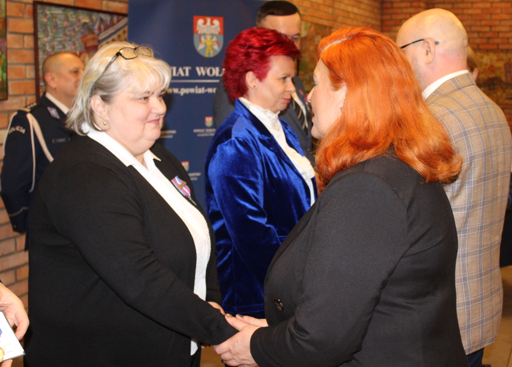 W dalszej części spotkania wręczone zostały medale za zasługi dla Zarządu KGP Związku Zawodowego Pracowników Policji i Zarządu Związku Zawodowego NSZZ Pracowników Policji KSP, które otrzymał Starosta Powiatu Wołomińskiego Pan Arkadiusz Werelich, w mieniu Burmistrza Miasta Wołomin Pani Elżbiety Radwan medal odebrał Zastępca Pan Dariusz Szymanowski oraz pracownicy Komendy Powiatowej Policji w Wołominie Pani Monika Piotrowska, Komisariatu Policji w Markach Pani Maria Rępalska, Komisariatu Policji w Jadowie Pani Elżbieta Misiak.