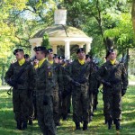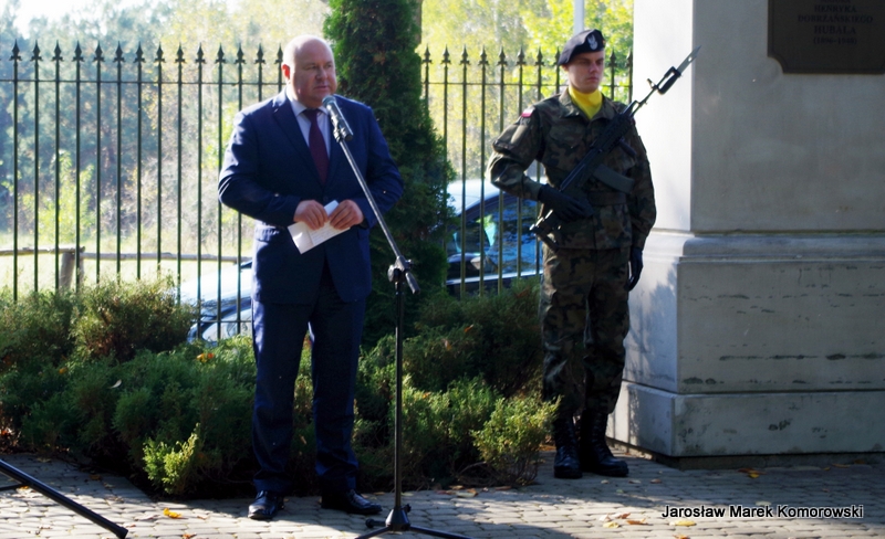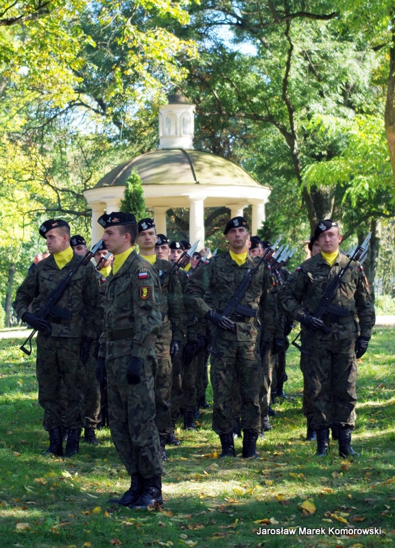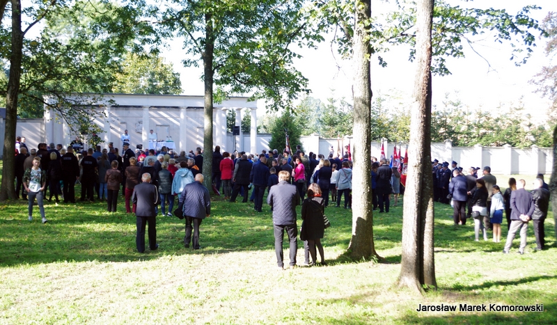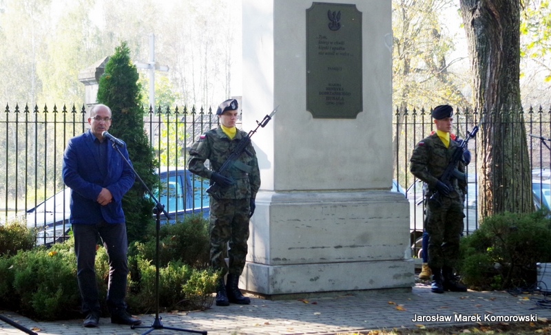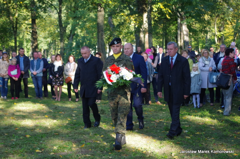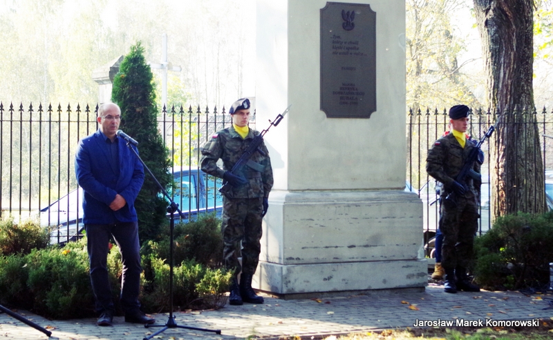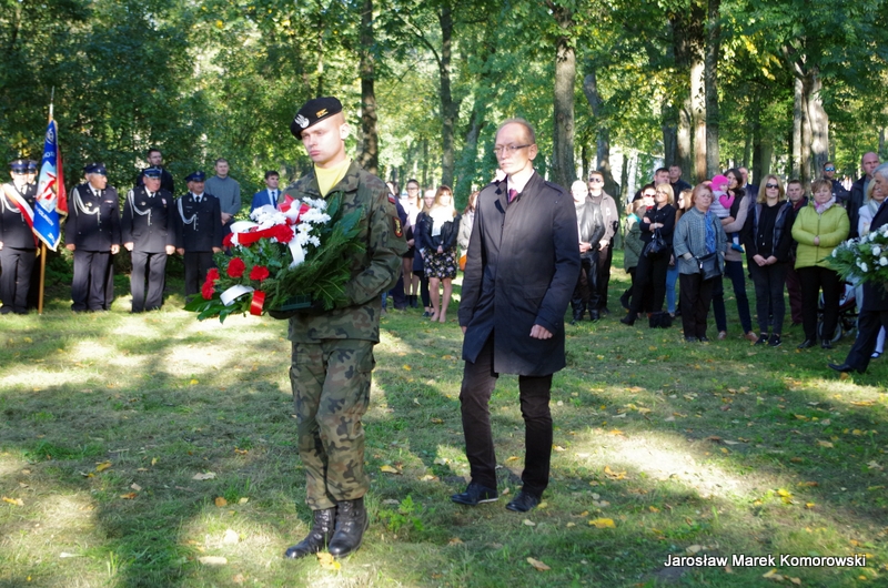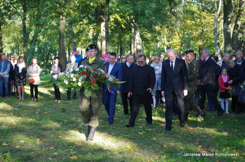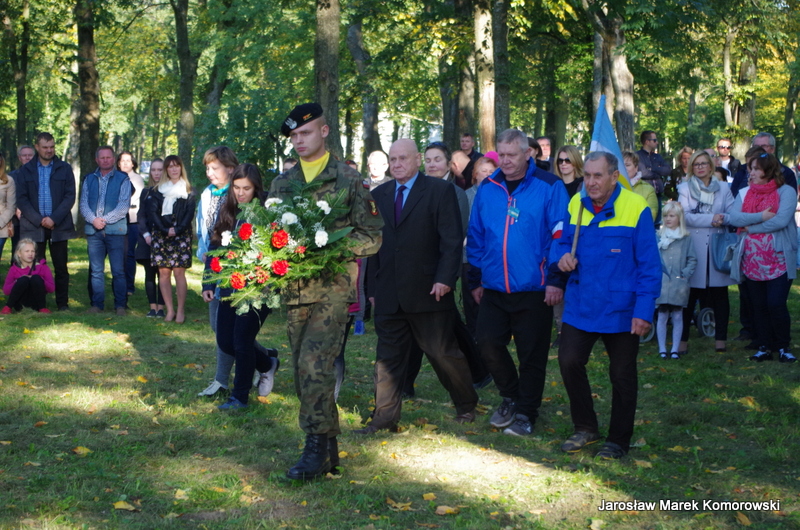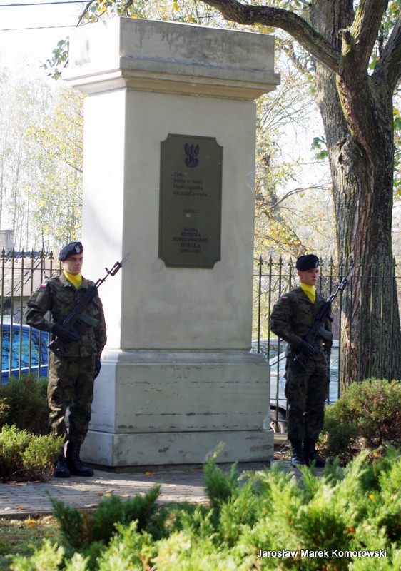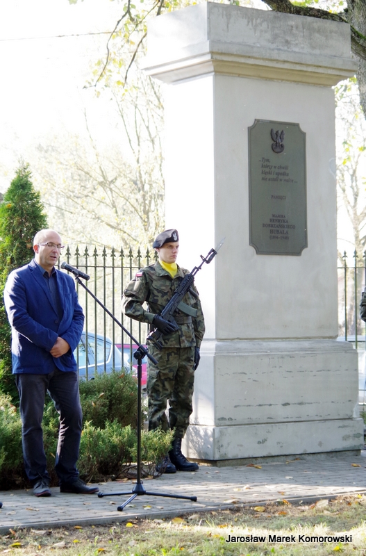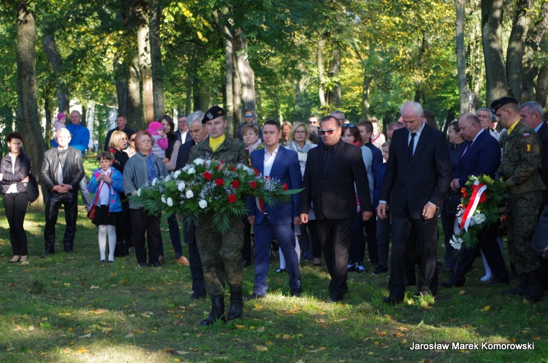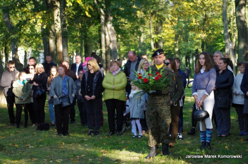 Po zakończeniu mszy świętej nastąpił uroczysty przemarsz pod pomnik mjr H. Dobrzańskiego ? ,,Hubala??, gdzie okolicznościowe przemówienia wygłosili organizatorzy wydarzenia: Adam Łossan, Jan Cymerman, wójt Gminy Poświętne oraz prof. Witold Modzelewski. Apel Pamięci, zakończony salwą honorową odczytał przedstawiciel 1 Brygady Pancernej w Wesołej