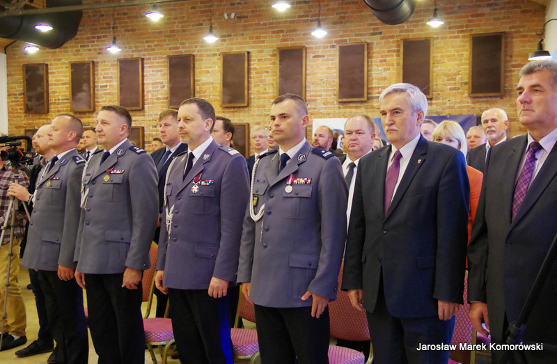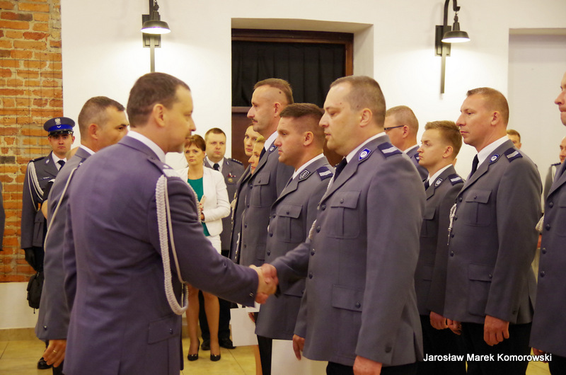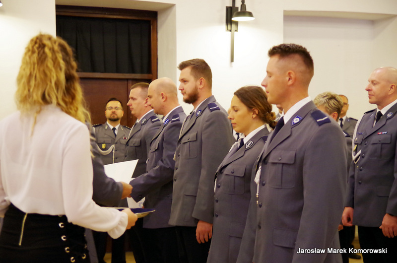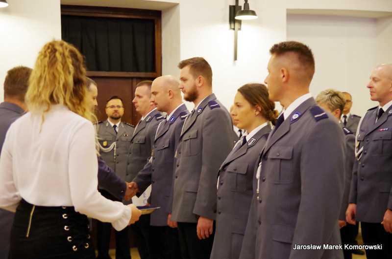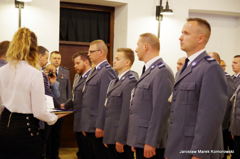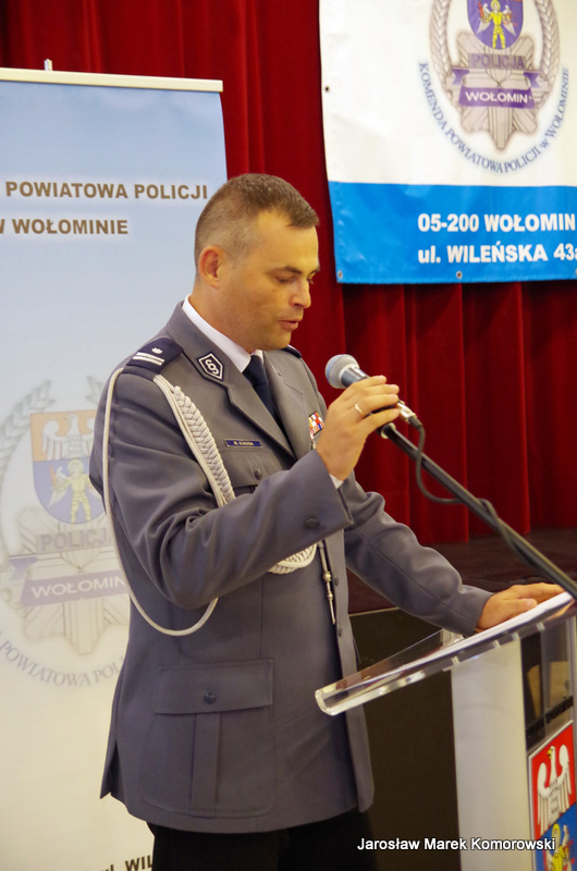 We wtorek 17 lipca br. w Wołominie uroczyście obchodzono 99. rocznicę powołania Policji Państwowej. Gościem honorowym był Komendant Stołeczny Policji nadinspektor Paweł Dobrodziej, który w asyście podinspektora dr. Marka Ujazdy ? Komendanta Powiatowego Policji w Wołominie wręczył policjantom odznaczenia państwowe i akty mianowania na wyższe stopnie policyjne. Srebrnym medalem za długoletnią służbę odznaczono 1 funkcjonariusza, awanse na wyższy stopień policyjny otrzymało łącznie 100 funkcjonariuszy z jednostek i komórek organizacyjnych wołomińskiej Komendy. Były też wyróżnienia i nagrody przekazane przez przedstawicieli lokalnych władz samorządowych policjantom, którzy na terenie miast i gmin mieli największy wpływ na poprawę bezpieczeństwa lokalnej społeczności.