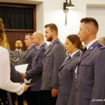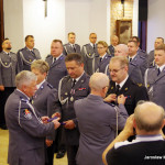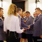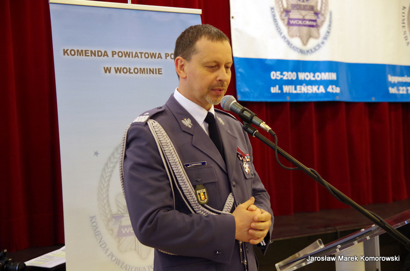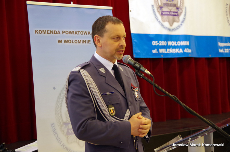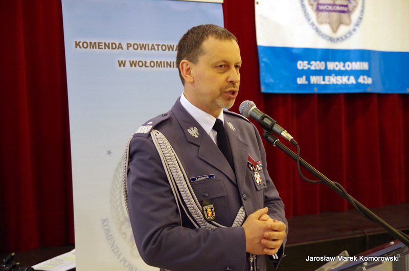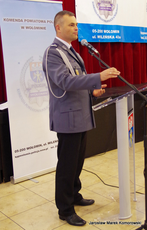 W uroczystościach, które miały miejsce w budynku Powiatowego Centrum Dziedzictwa i Twórczości w Wołominie ? ?Fabryczce?, wzięli również udział: I Zastępca Komendanta Powiatowego Policji w Wołominie młodszy inspektor Leszek Czaplicki, Zastępca Komendanta Powiatowego Policji młodszy inspektor Jerzy Sztuc, Wicestarosta Wołomiński Adam Łossan, przedstawiciele Rady Powiatu oraz burmistrzowie, wójtowie i przedstawicie lokalnych władz samorządowych z: Kobyłki, Zielonki, Ząbek, Radzymina, Marek, Tłuszcza, Klembowa oraz Dąbrówki, Jadowa i Poświętnego, a także przedstawiciele wielu innych instytucji. Wicestarosta złożył policjantom gratulacje i okolicznościowe życzenia.