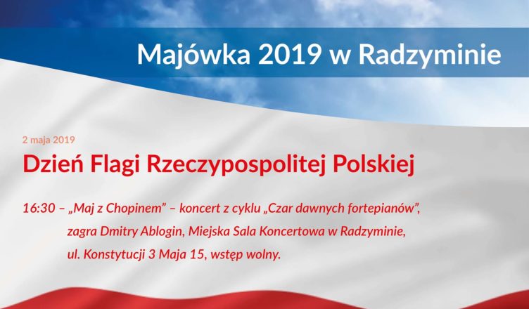 Gmina Radzymin i Biblioteka Publiczna Miasta i Gminy Radzymin zapraszają na uroczystości i wydarzenia w Dniu Flagi i podczas Święta Konstytucji 3 Maja. W czwartek 2 maja o godz. 16:30 koncert „Maj z Chopinem”, w piątek 3 maja – uroczysta Msza Św. o godz. 13:00, uroczystości oficjalne o godz. 14:15 na pl. Kościuszki i świąteczny piknik rodzinny w godz. 15-19 na Skwerze Czterech Wieszczów: