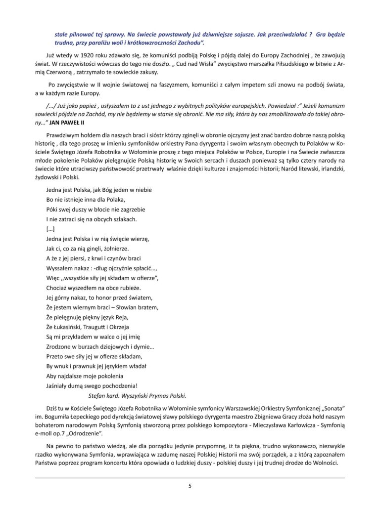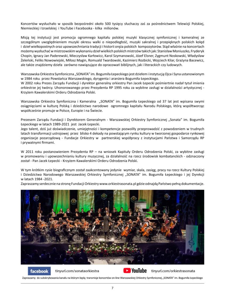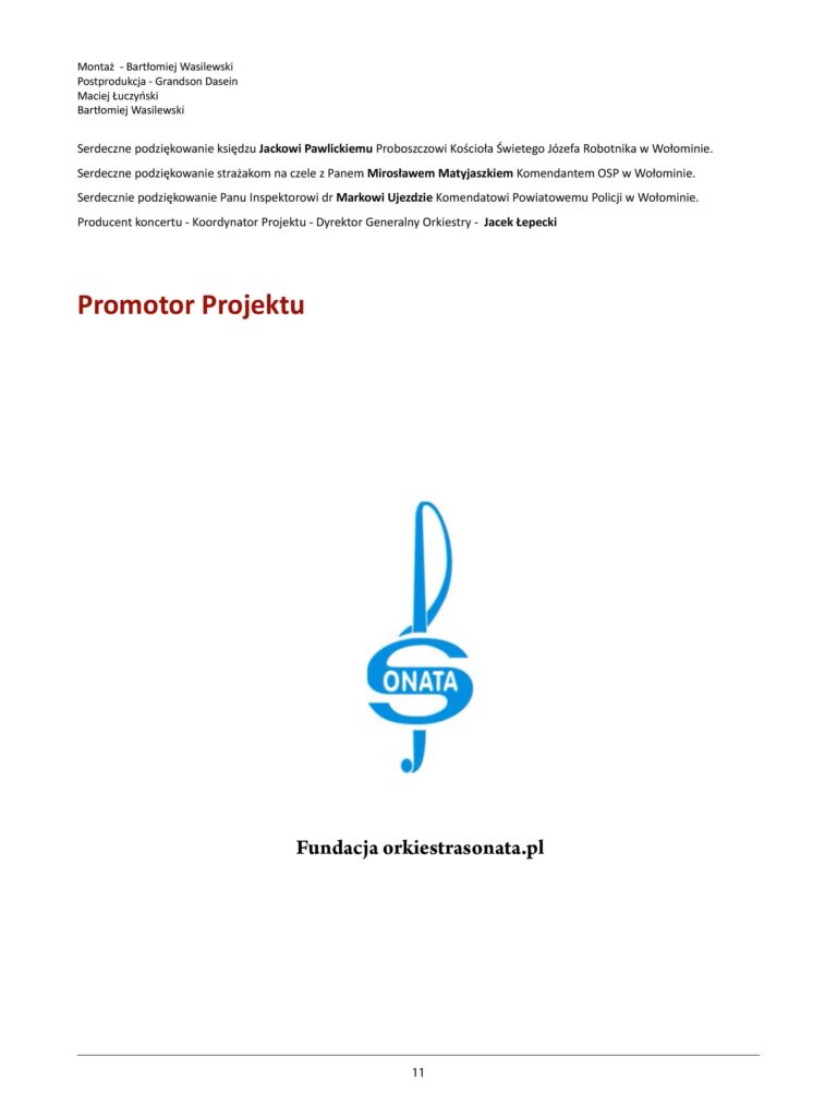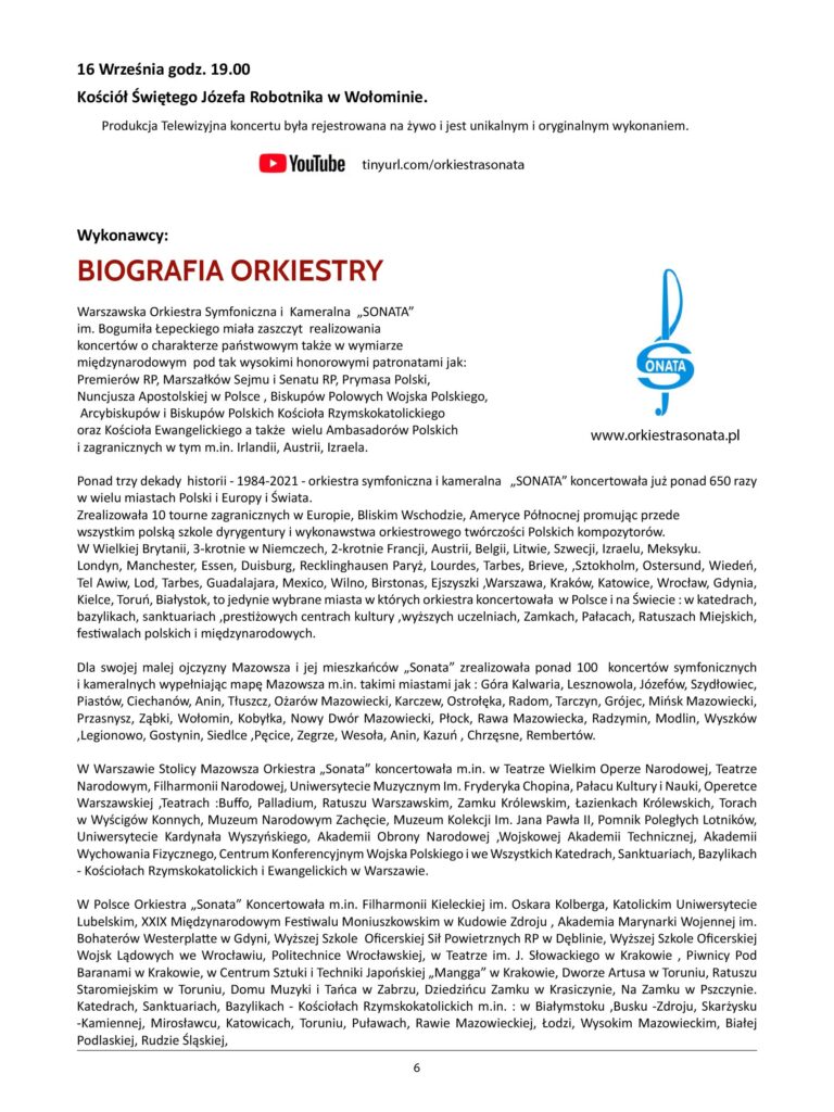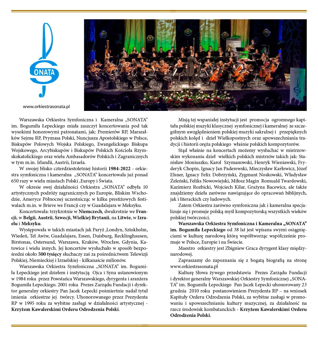 16 września w Kościele Świętego Józefa Robotnika w Wołominie Warszawska Orkiestra Symfoniczna „SONATA” im. Bogumiła Łepeckiego pod dyrekcją Maestro Zbigniewa Gracy wykonała Symfonię e-moll op. 7 ODRODZENIE – Mieczysława Karłowicza. Prezes Zarządu Fundacji i Dyrektor Generalny Orkiestry Jacek Łepecki serdecznie zaprasza do obejrzenia i wysłuchania tego niezwykłego koncertu.