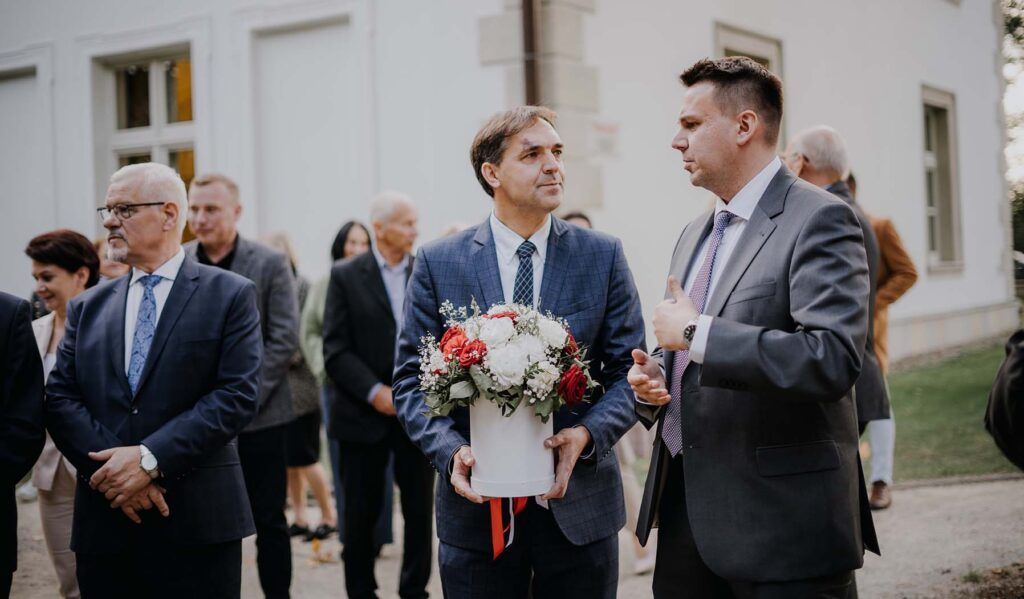 – Właśnie tutaj w Pałacu w Chrzęsnem znajduje się stała wystawa poświęcona życiu i twórczości artysty, traktowana przez nas przez wiele lat jako zalążek przyszłego Muzeum, które dzięki naszej wspólnej inicjatywie z Powiatem Wyszkowskim i gminą Zabrodzie oraz przy wsparciu polskiego rządu zainaugurowało swoją działalność w ubiegłym roku w Pałacu w Dębinkach, gdzie odbędzie się druga część dzisiejszych uroczystości – powiedział do zgromadzonych Adam Lubiak – Starosta Wołomiński.