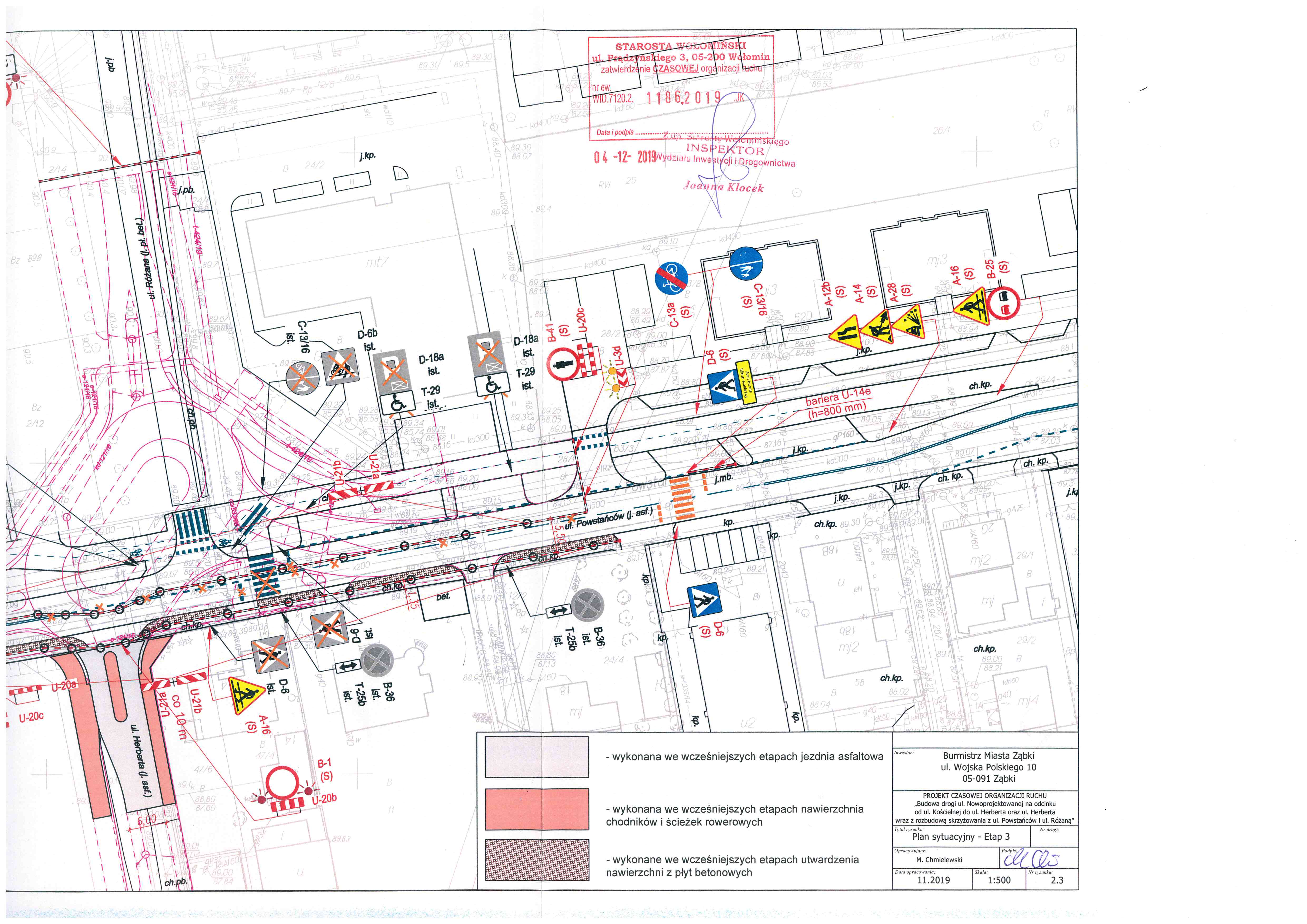 Firma KROL wykonawca budowy ul. Herberta poinformowała o wdrożeniu czasowej organizacji ruchu nr zatwierdzenia WID.7120.2.1186.2019.JK, niezbędnej do wykonania nowego ronda na ul. Powstańców. Skrzyżowanie o ruchu okrężnym o wydłużonym kształcie połączy ulicę Powstańców, z wybudowaną ul. Hertberta i nową ul. Różaną na budowę której w ostatnich dniach został ogłoszony przetarg.
