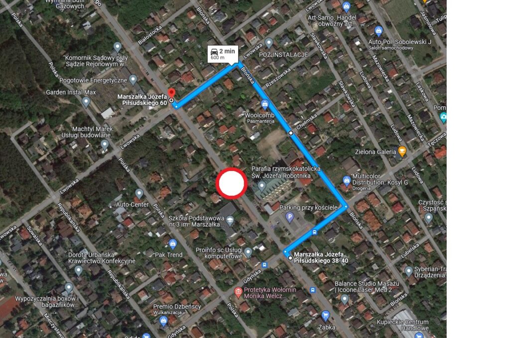 W związku z budową przyłączy kanalizacji sanitarnej i deszczowej do powstającego Hospicjum Opatrzności Bożej, w dniach 17.06.2022 ? 21.06.2022 r. wyłączony zostanie z ruchu komunikacyjnego odcinek drogi powiatowej nr 4360W ? ul. Piłsudskiego w Wołominie, na odcinku od ul. Gdyńskiej do ul. Lwowskiej.