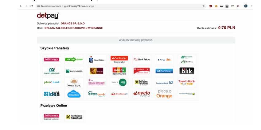 - Uważaj na wszystkie wiadomości o konieczności zapłaty lub dopłaty drobnych kwot (np. 0,76 PLN) zawierające link do strony udającej pośrednika płatności. Przed wykonaniem przelewu skontaktuj się z firmą, która figuruje jako nadawca wiadomości (np. operator telekomunikacyjny, sklep czy serwis internetowy).