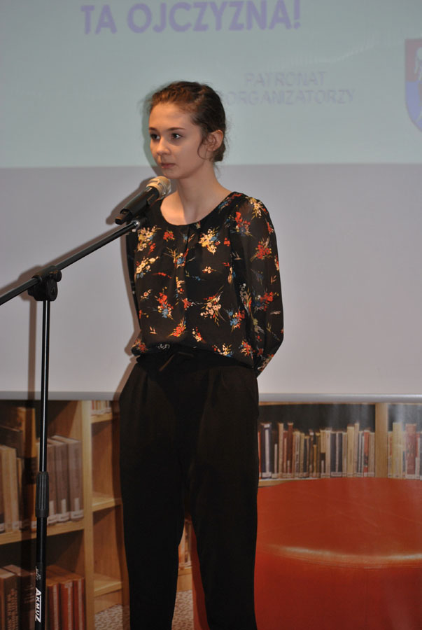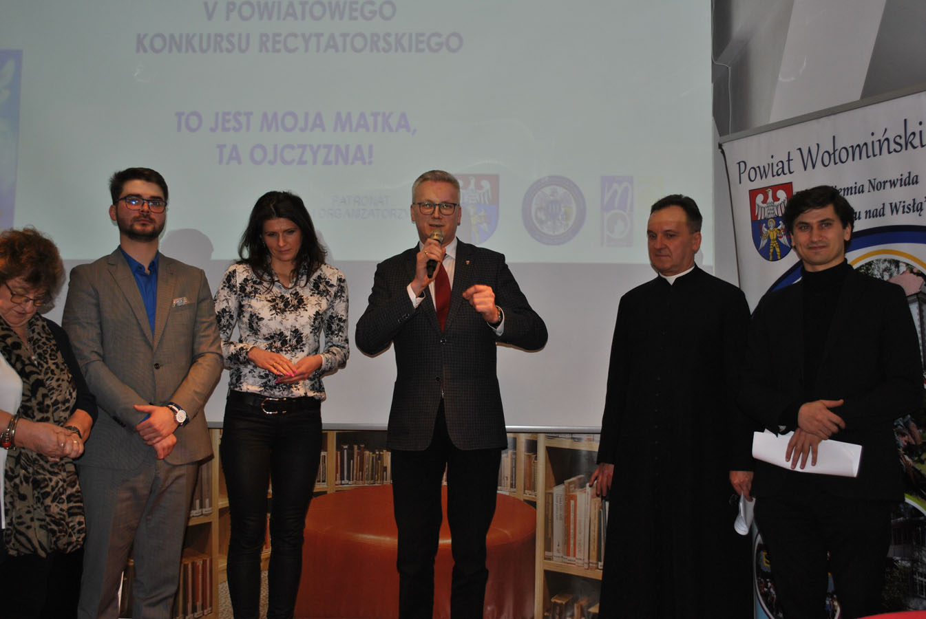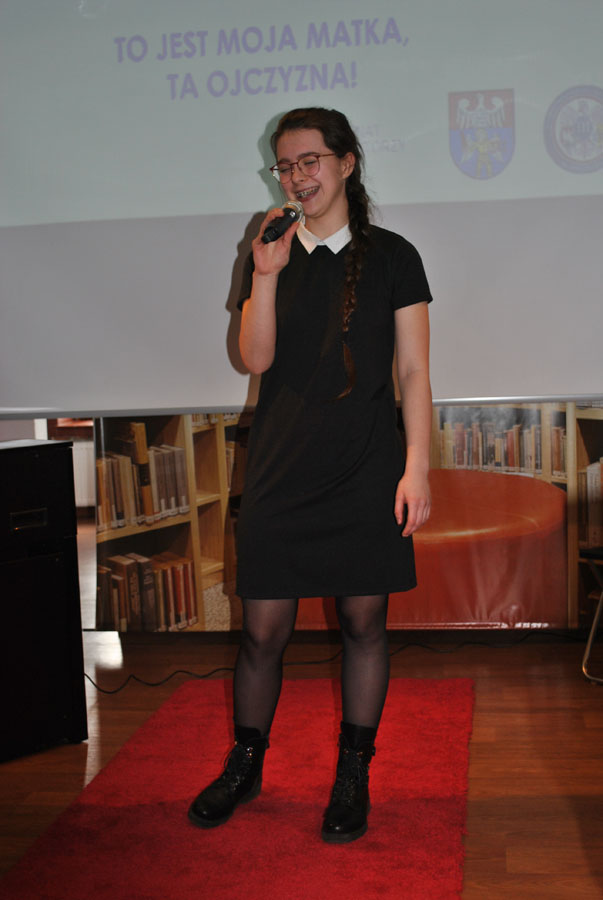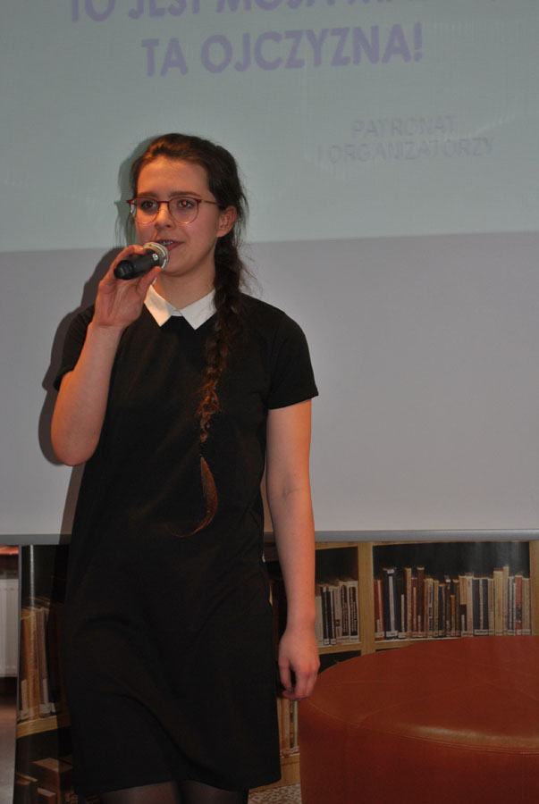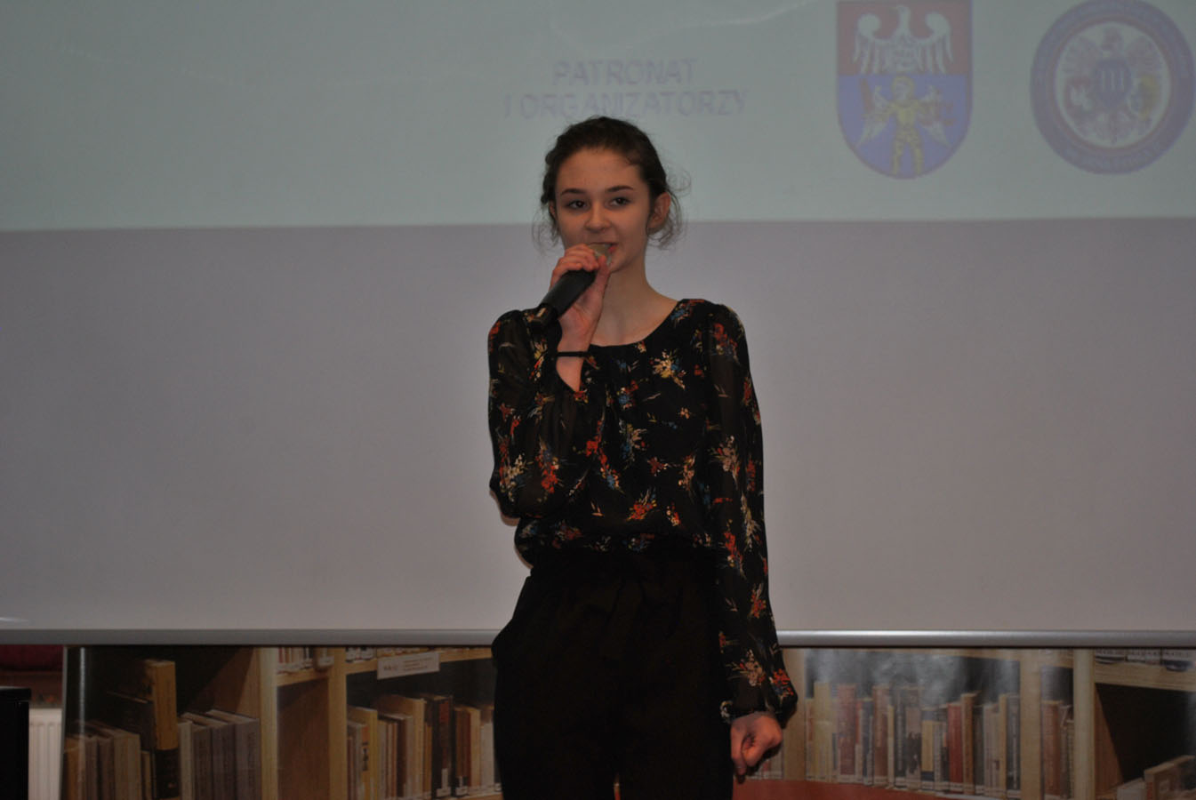 W dniu 22 marca 2019 r. o godz. 10.00 w sali konferencyjnej Miejskiej Biblioteki Publicznej im. Z. Nałkowskiej odbył się finał konkursu, do którego – po szkolnych eliminacjach – zakwalifikowało się 27 uczniów z następujących szkół: Zespół Szkół Ekonomicznych im. S. Staszica w Wołominie, Zespół Szkół im. K. K. Baczyńskiego w Tłuszczu, III Liceum Ogólnokształcące im. Jana Pawła II w Wołominie. Najpierw zaprezentowali się finaliści w kategorii RECYTACJA, następnie w WOKALNEJ. Prace z kategorii PLASTYCZNEJ zostały umieszczone na sztalugach i stworzyły wystawę towarzyszącą występom uczestników konkursu.