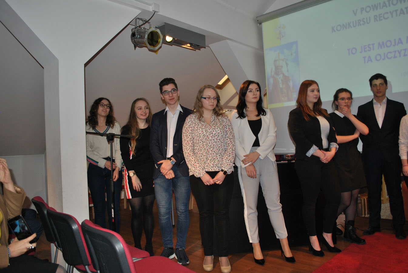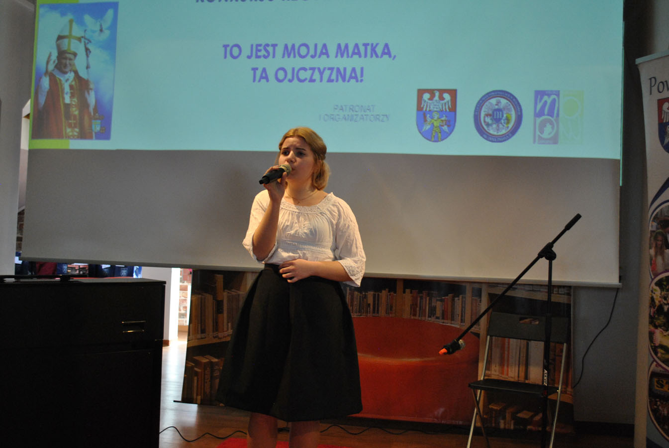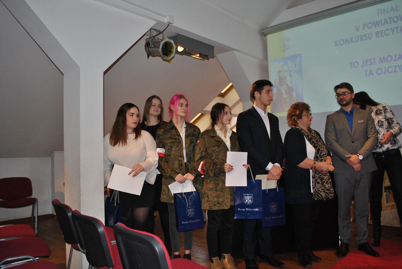 Tegoroczny konkurs został zorganizowany przede wszystkim z okazji zbliżającej się kolejnej rocznicy kanonizacji Papieża Polaka i minionej setnej rocznicy odzyskania niepodległości przez Polskę. Jak wszyscy wiemy, Jan Paweł II zawsze podkreślał wartość ojczyzny i uczył nas patriotyzmu. Dlatego właśnie hasłem przewodnim konkursu stały się jego słowa: ?To jest moja Matka! Ta Ojczyzna!?. Uczniowie szkół ponadgimnazjalnych z powiatu wołomińskiego zmierzyli się w trzech kategoriach.