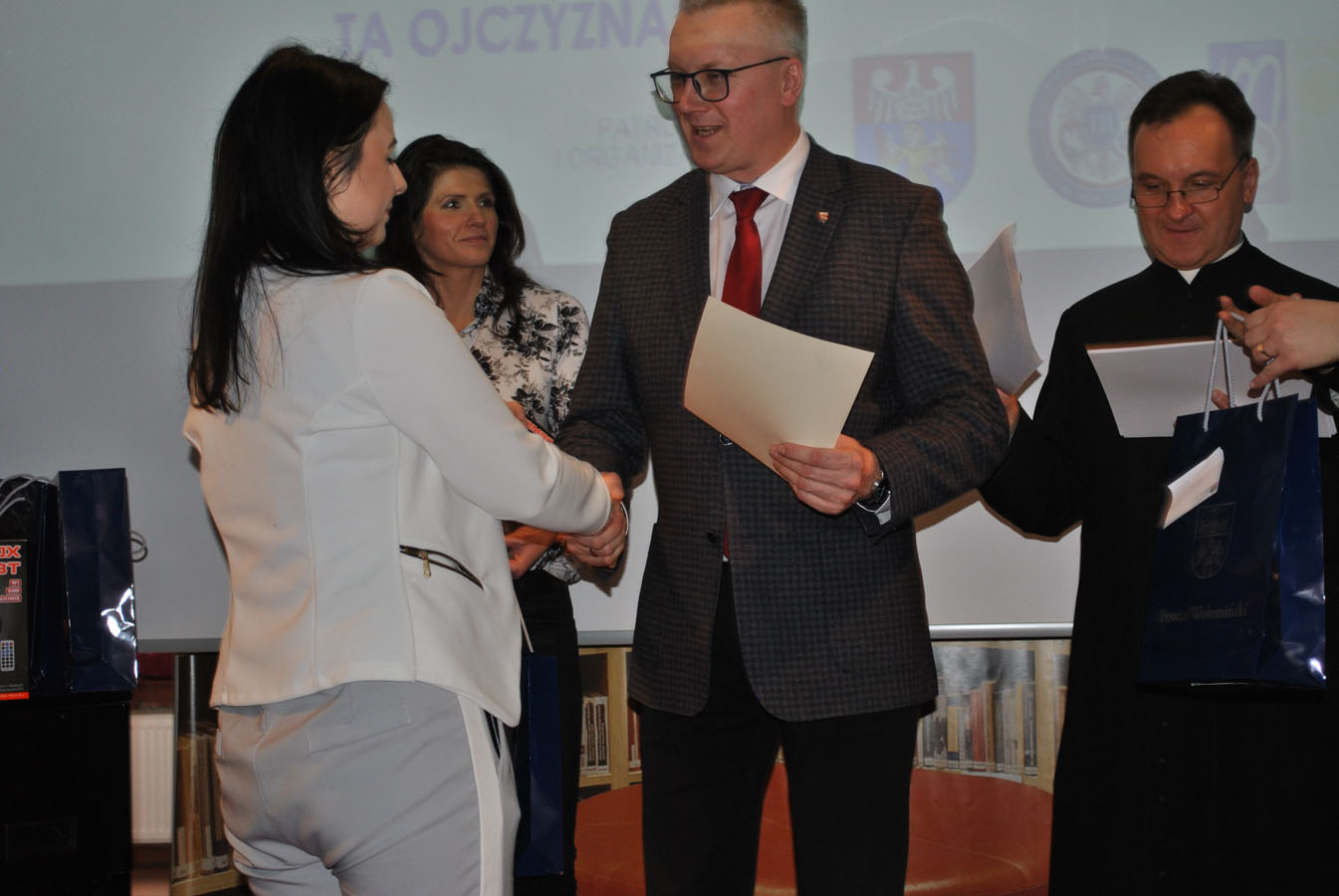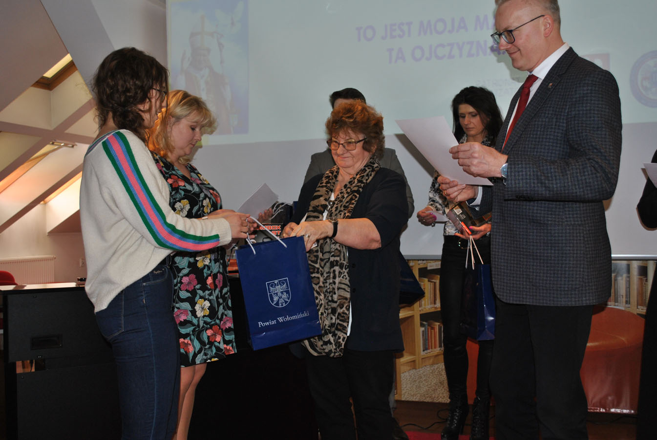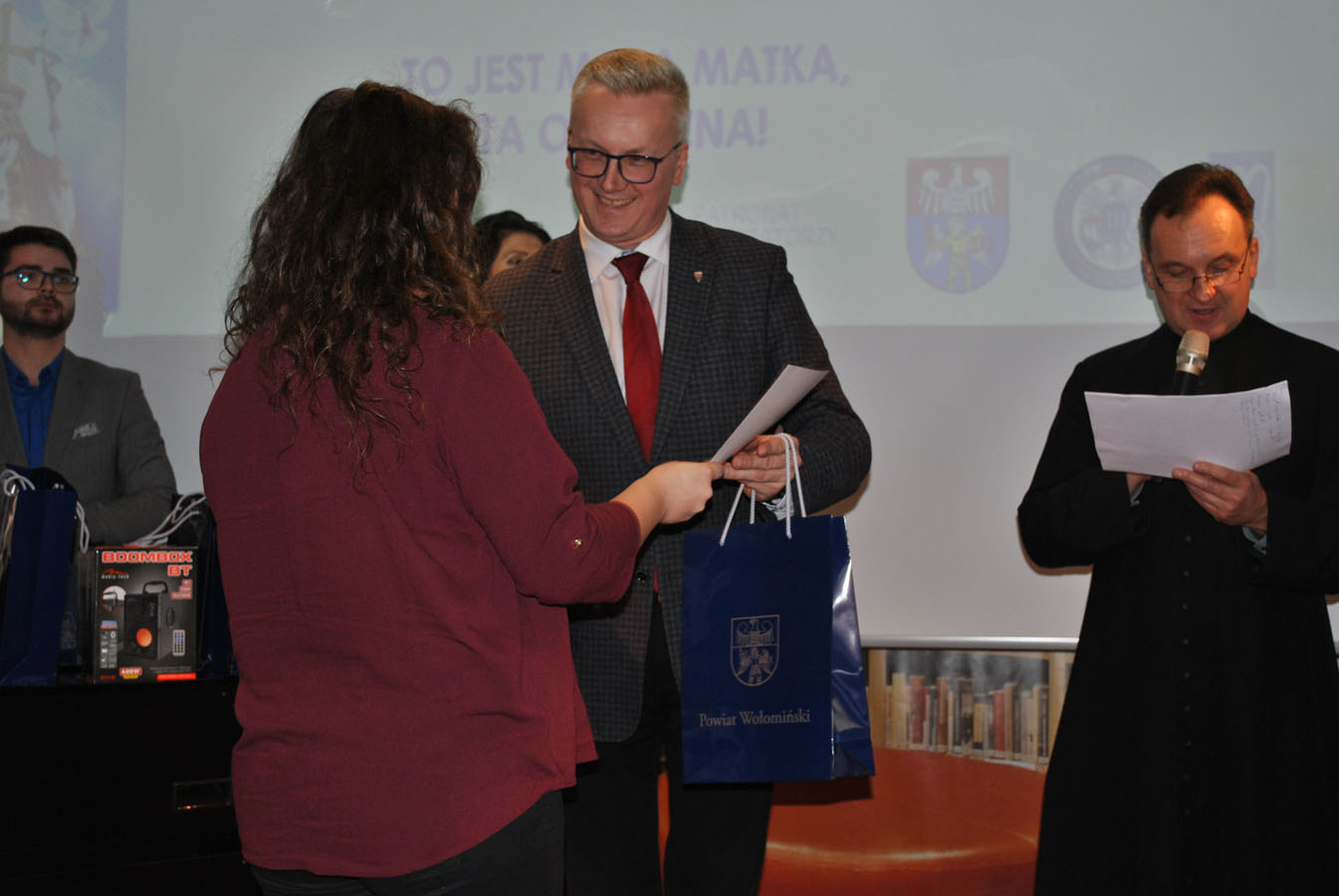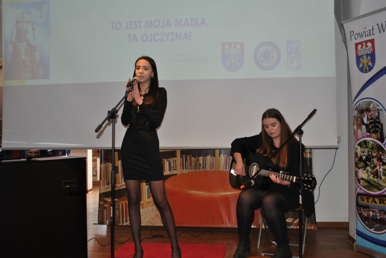 Tegoroczny konkurs został zorganizowany przede wszystkim z okazji zbliżającej się kolejnej rocznicy kanonizacji Papieża Polaka i minionej setnej rocznicy odzyskania niepodległości przez Polskę. Jak wszyscy wiemy, Jan Paweł II zawsze podkreślał wartość ojczyzny i uczył nas patriotyzmu. Dlatego właśnie hasłem przewodnim konkursu stały się jego słowa: ?To jest moja Matka! Ta Ojczyzna!?. Uczniowie szkół ponadgimnazjalnych z powiatu wołomińskiego zmierzyli się w trzech kategoriach.