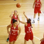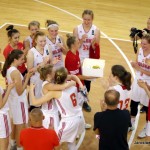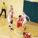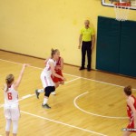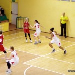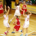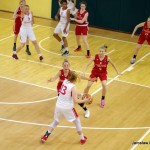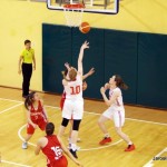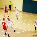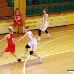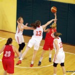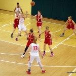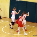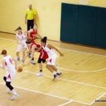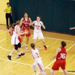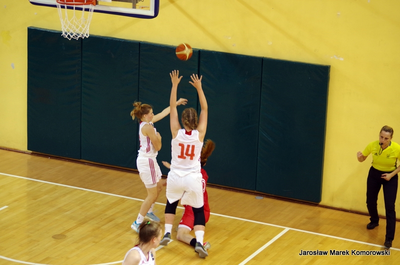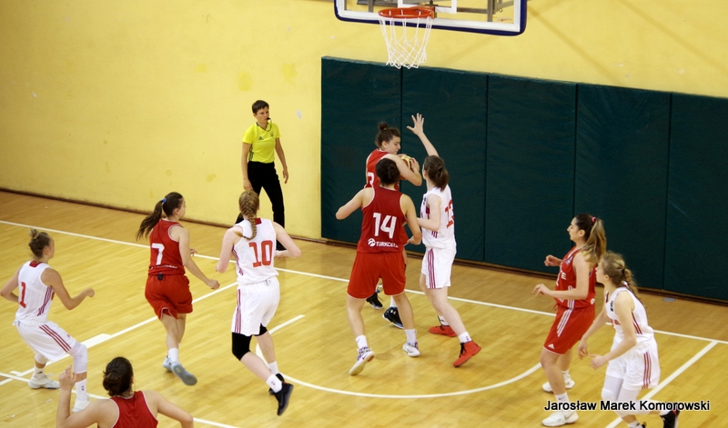 Po pięciu minutach trzeciej części spotkania stosunek punktowy wynosił 42:45. Szala zwycięstwa ponownie przechyliła się na polską stronę na cztery minuty i 9 sekund przed końcem tej fazy rywalizacji. Przy stanie 44:45 dwa rzuty osobiste skutecznie wykonała Magda Szulc, zawodniczka z Sokołowa Podlaskiego. Do końca partii Polki umocniły swoje prowadzenie i po trzech czwartych meczu prowadziły 55:52.