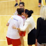 Od początku czwartej kwarty było widać chęć do gry, wolę walki i zaangażowanie z obu stron. W pierwszych minutach Polki utrzymały prowadzenie, mimo że przyjezdne kilkukrotnie zbliżały się na odległość jednego punktu: 57:56, 59:58. Na trzy minuty i osiem sekund przed końcem regulaminowego czasu gry Turczynki wyszły na prowadzenie. Po rzucie zawodniczki gości za trzy punkty stosunek punktowy wynosił 61:62. Przeszło minutę przed końcem meczu niekorzystny rezultat wynosił już 63:66. Jednakże po faulu przy rzucie za trzy punkty, jedna z Polek doprowadziła do wyrównania, trafiając trzykrotnie zza linii rzutów wolnych. Po końcowej syrenie wynik pojedynku wynosił 66:66.