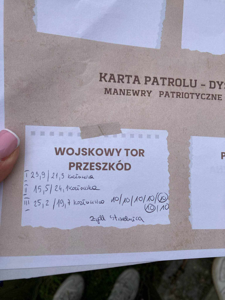 – wojskowy tor przeszkód (w tym strzelanie i rzut granatem),