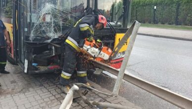 Do bardzo groźnego wypadku doszło 13 lipca w godzinach nocnych na ul. Chełmżyńskiej. Autobus miejski najechał na barierę energochłonną, która przebiła pojazd na
