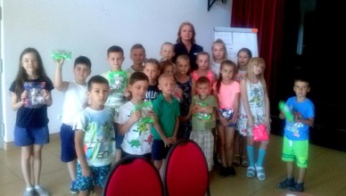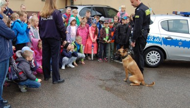 Dzielnicowa z Dąbrówki spotkała się młodymi mieszkańcami gminy ? uczestnikami Akcji Letniej zorganizowanej przez Gminne Centrum Kultury i Bibliotekę w Dąbrówce. Dzieci czekało