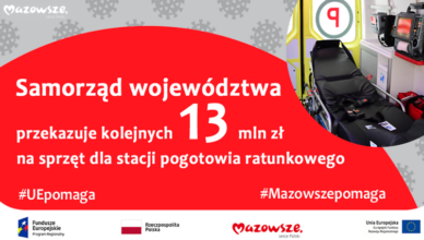 Samorząd Mazowsza zdecydował o przyznaniu prawie 13 mln zł dodatkowych środków z Unii Europejskiej na wsparcie stacji pogotowia ratunkowego i transportu sanitarnego w