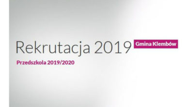 Od dnia 26 kwietnia 2019 r., od godziny 15, na stronie internetowej systemu rekrutacji do przedszkoli i oddziałów przedszkolnych Gminy Klembów, dla rodziców