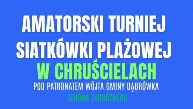 Zapraszamy wszystkich mieszkańców Gminy Dąbrówka, amatorów i pasjonatów siatkówki plażowej na Amatorski Turniej Siatkówki Plażowej w Chruścielach pod patronatem Wójta Gminy Dąbrówka Zenona