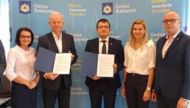 Burmistrz Radzymina Krzysztof Chaciński podpisał 25 czerwca umowę z firmą ELTAST, która zainstaluje nowe oświetlenie uliczne ? energooszczędne lampy LED. Zastąpią one dotychczasowe