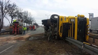Pomiędzy Wyszkowem a Radzyminem w samochodzie ciężarowym jadącym w kierunku Warszawy pękła opona, co spowodowało przewrócenie się pojazdu. Przewożony piach wysypał się i
