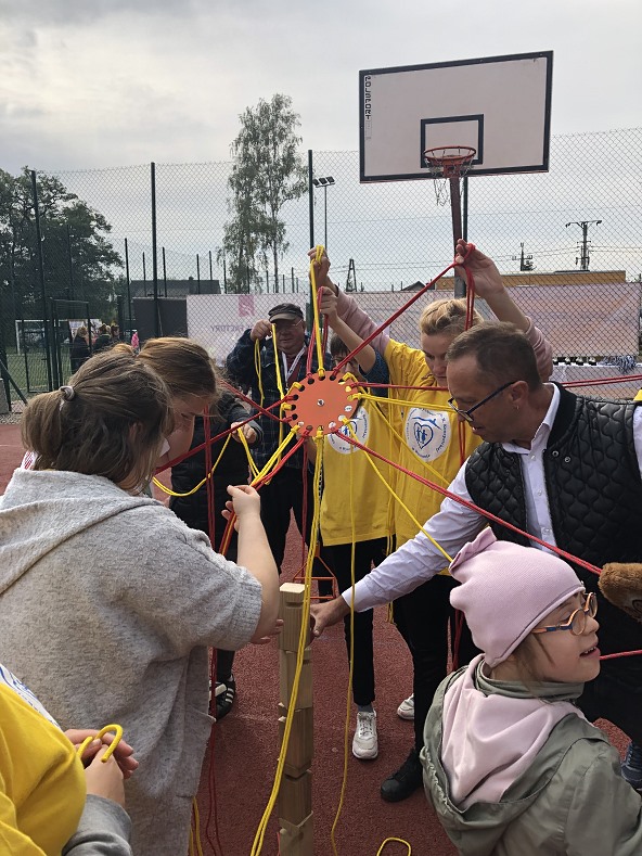 Sportowe święto rozpoczęła Dyrektor Zespołu Szkół Specjalnych w Ostrówku Pani Agnieszka Pytkowska, która przywitała drużyny z zaprzyjaźnionych szkół i placówek, życząc wszystkim uczestnikom wielu pozytywnych wrażeń oraz pięknej sportowej rywalizacji. Podkreśliła, że sama obecność zawodników już czyni ich zwycięzcami. Podczas uroczystości towarzyszyli nam m.in. Wicestarosta Powiatu Wołomińskiego Pan Robert Szydlik, Naczelnik Wydziału Edukacji pani Hanna Skrzypczak, Radna Sejmiku Województwa Mazowieckiego pani Bożena Żelazowska, przedstawiciele Rady Rodziców.