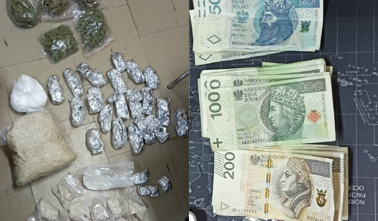 Pod wytypowanym adresem pojawił się mężczyzna będący w zainteresowaniu mundurowych, który usiłował zatrzasnąć im drzwi. Bezskutecznie. Policjanci skontrolowali mężczyznę, znajdując przy nim kilka porcji środków odurzających oraz ponad 4 tysiące złotych. Następnie kryminalni razem z 40-latkiem udali się do jego mieszkania. Tam, w pokoju dziennym znaleźli poporcjowane różne substancje. Znalezionym przy mężczyźnie kluczem policjanci otworzyli piwnicę, która również była w jego użytkowaniu. W wyniku przeszukania znaleźli kolejne porcje narkotyków.