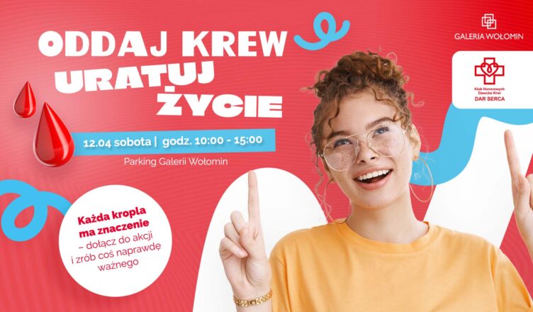 W sobotę 12 kwietnia pod Galerią Wołomin stanie krwiobus. To kolejna akcja we współpracy z Klubem Honorowych Dawców Krwi PCK „Dar Serca”. Pod hasłem „Oddaj krew, uratuj życie” wszyscy chętni, po zakwalifikowaniu przez lekarza, będą mogli zostać honorowymi dawcami krwi. W ten weekend również kolejna edycja akcji „Dobre Rzeczy” (sobota i niedziela handlowa). W godz. 11:00-19:00 będzie można oddać niepotrzebne już ubrania i buty i odebrać upominki. Dodatkową atrakcją będą kreatywne warsztaty z malowania na odzieży, które odbędą się 12 kwietnia.