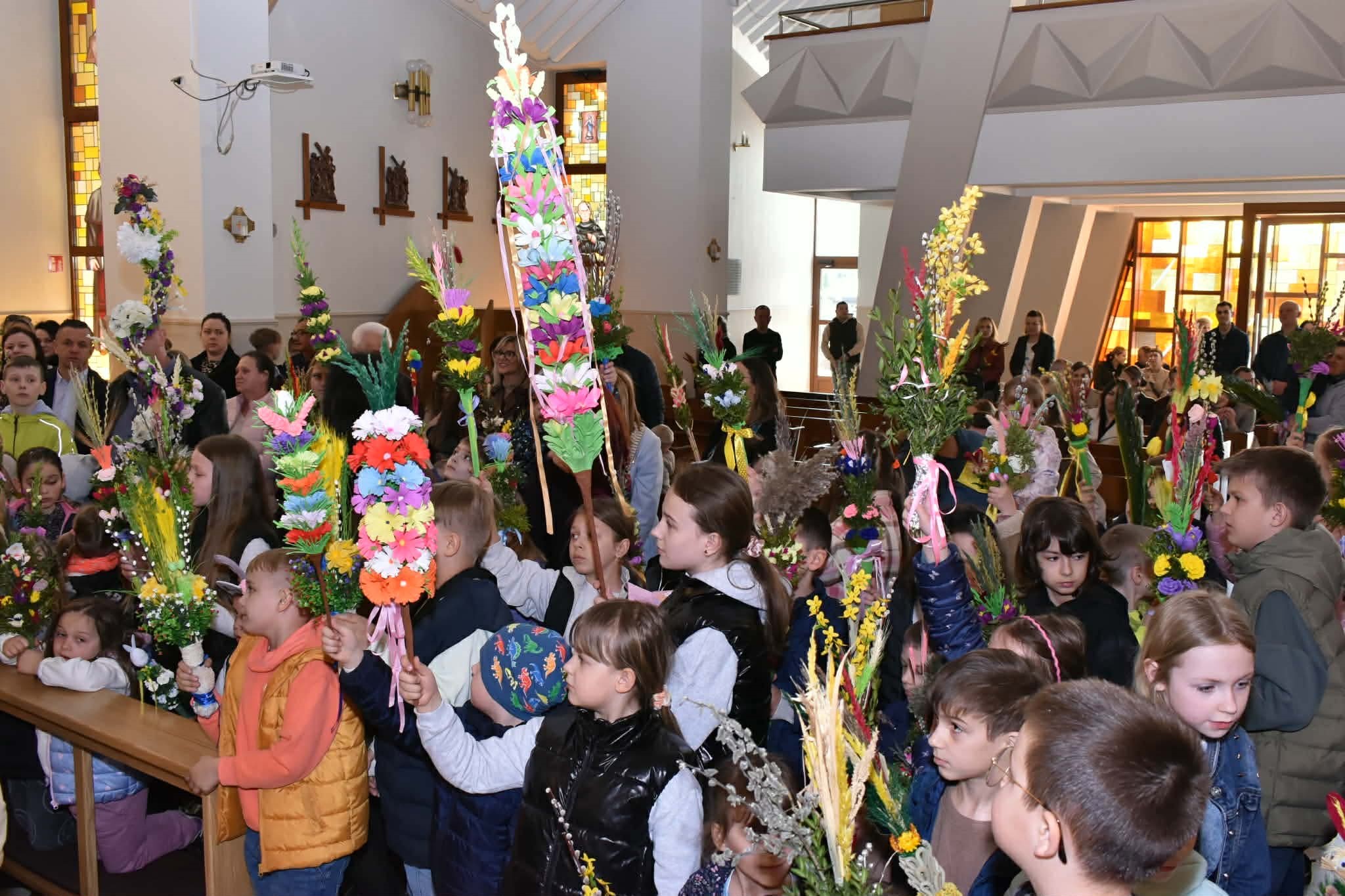 Podczas mszy świętej dla dzieci odbyło się uroczyste poświęcenie palm przez księdza proboszcza. Wydarzenie zgromadziło zarówno najmłodszych, jak i dorosłych, podkreślając znaczenie wspólnego przeżywania tradycji. Szczególną atrakcją był konkurs na najpiękniejszą palmę wielkanocną, przygotowany przez Koło Gospodyń Wiejskich z Tułu oraz KGW „Dębowe Wianki” z Ostrówka.