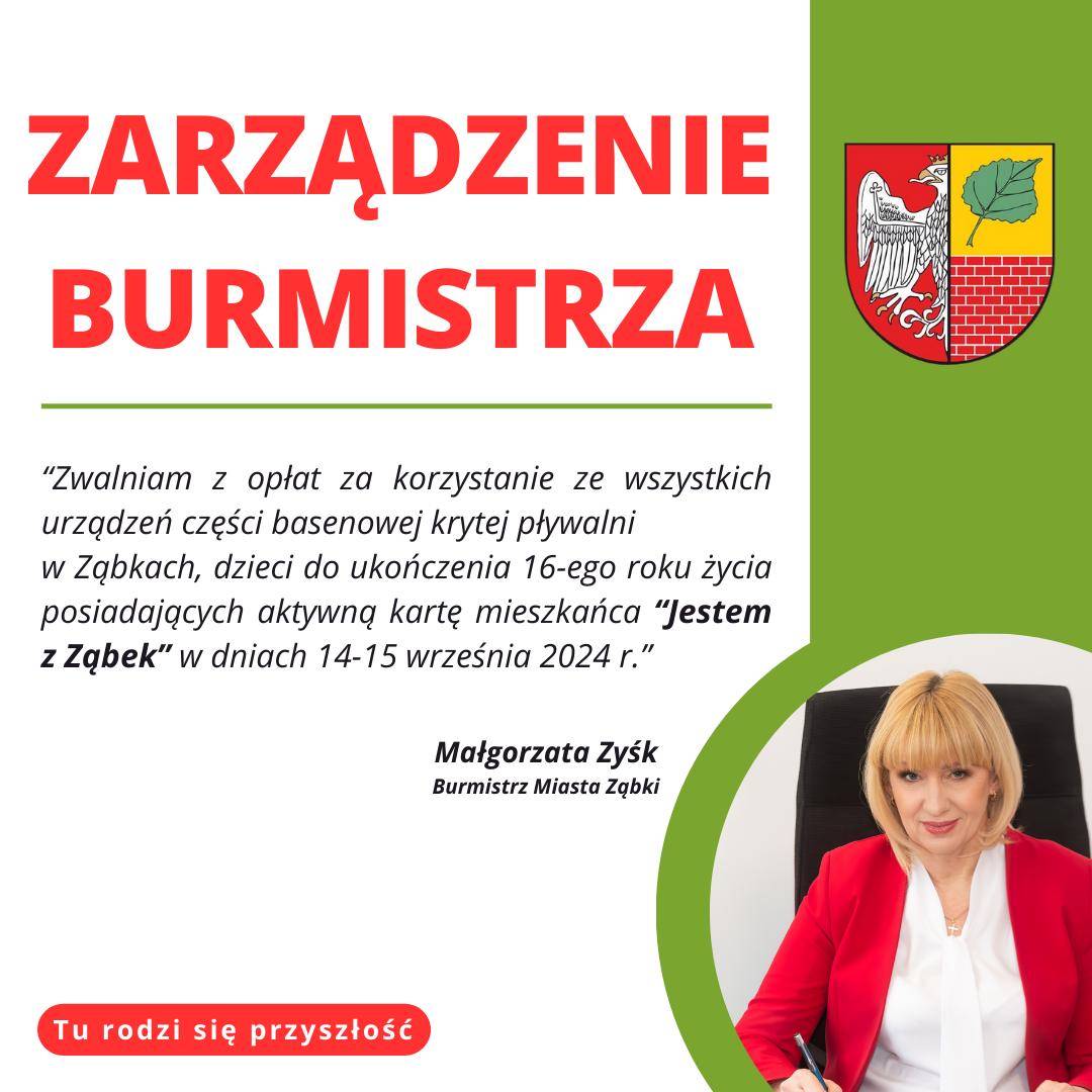 Decyzją Małgorzaty Zyśk Burmistrz Miasta Ząbki w dniach 14-15 września 2024 r. dzieci do ukończenia 16-ego roku życia, posiadające aktywną kartę mieszkańca „Jestem z Ząbek” będą mogły nieodpłatnie korzystać z części basenowej miejskiej pływalni!