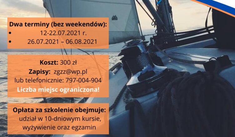 Związek Gmin Zalewu Zegrzyńskiego zaprasza do udziału w szkoleniu żeglarskim przygotowującym do egzaminu na patent Żeglarza Jachtowego.