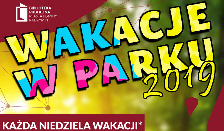 W każdą niedzielę wakacji w parku Czartoryskiej w Radzyminie czekają na mieszkańców miasta rodzinne atrakcje! W ramach tegorocznej akcji „Wakacje w parku 2019” Biblioteka Publiczna Miasta i Gminy Radzymin przygotowała dla najmłodszych program animacji i zabaw (niedziele, w godz. 15-18), zaś dla dorosłych – strefę wypoczynku oraz pod wieczór zabawę taneczną! „Wakacje w parku” startują już w tę niedzielę, 23 czerwca 2019.