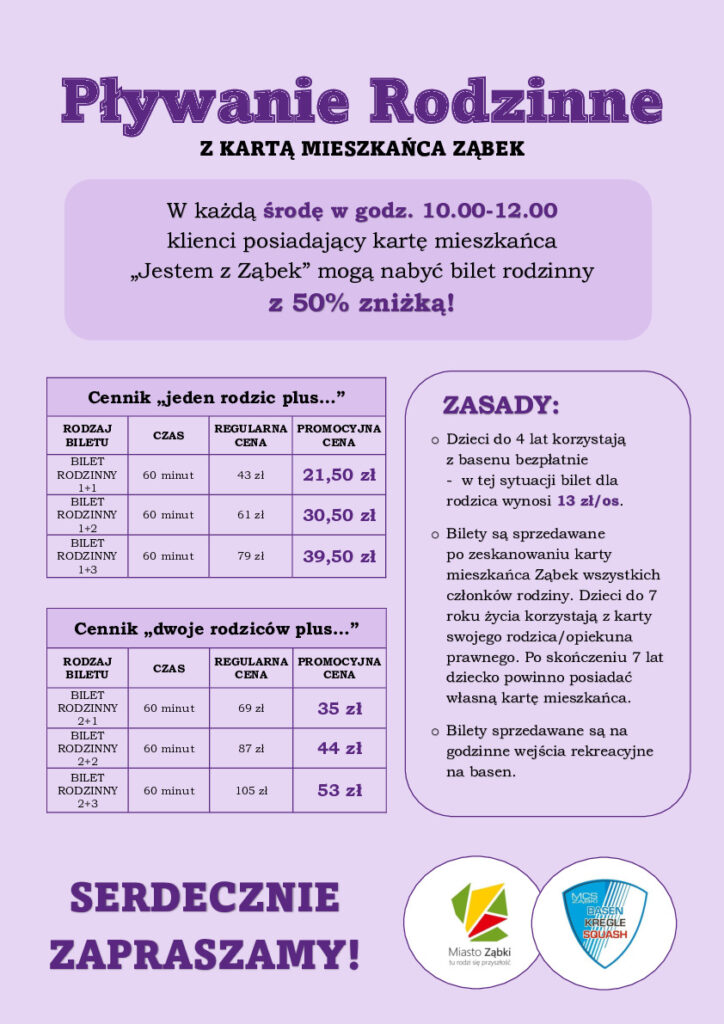 – W środy w godz. 10.00-12.00 dla posiadaczy karty Jestem z Ząbek” obowiązuje dodatkowa super promocja. Bilety ze zniżką -50% – zachęca Miejskie Centrum Sportu