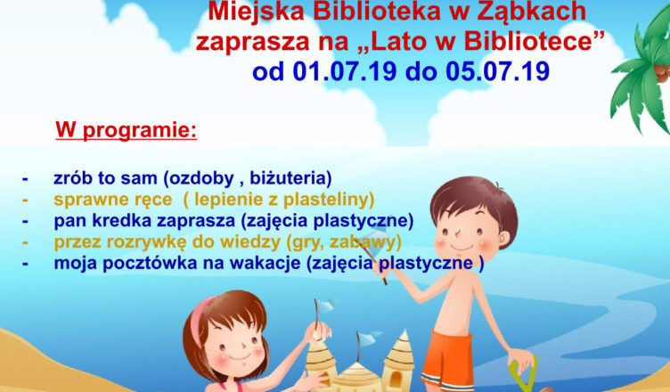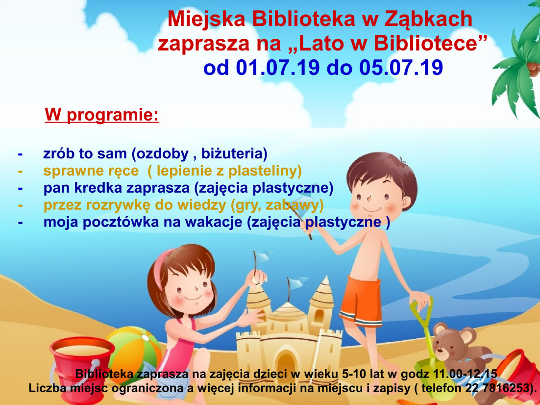 Uwaga: Od 1 lipca do 31.08.2019 Miejska Biblioteka w Ząbkach pracuje w godzinach: