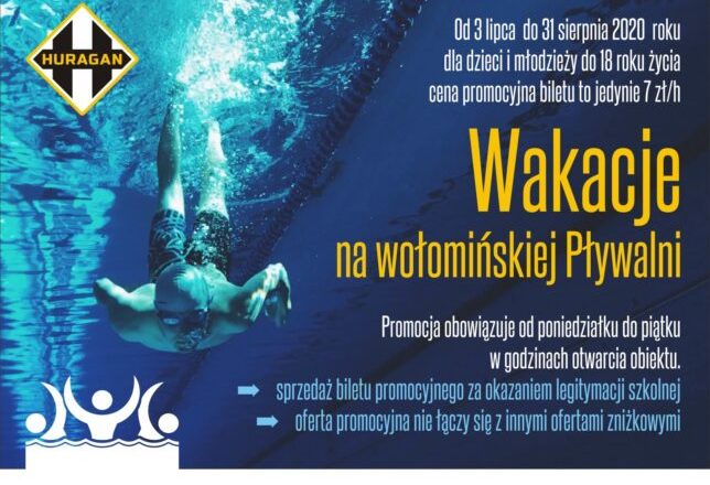 Pływalnia Ośrodka Sportu i Rekreacji ?Huragan? w Wołominie przygotowała specjalną ofertę wakacyjną dla dzieci i młodzieży do 18 lat.
